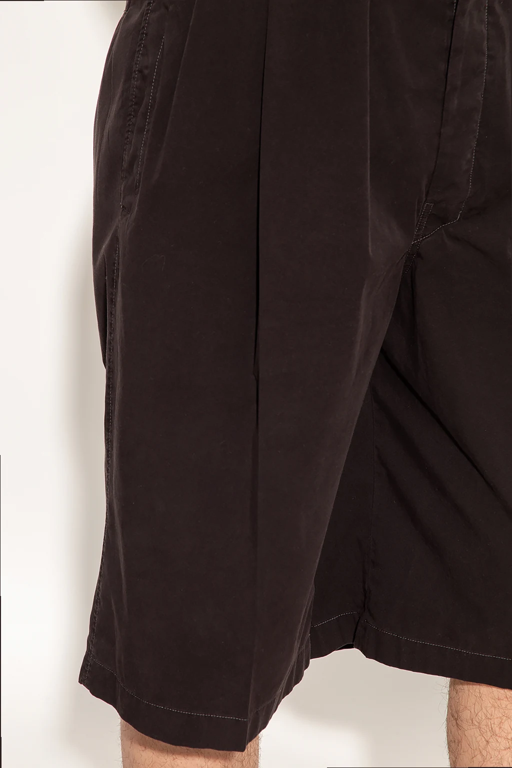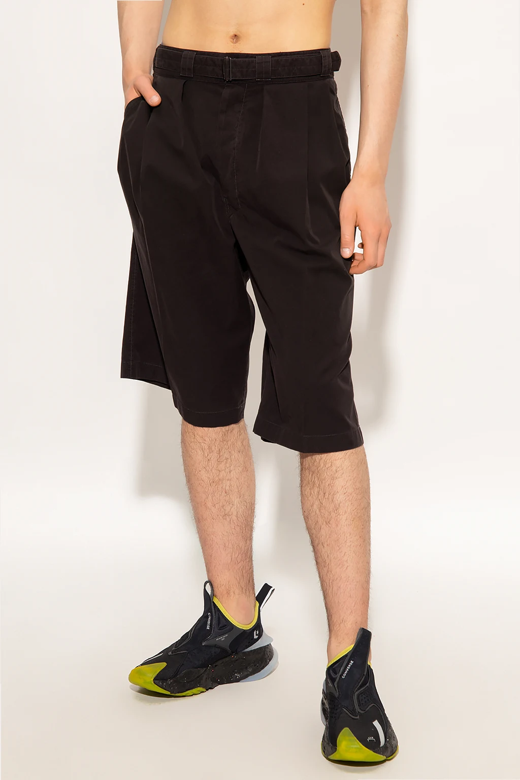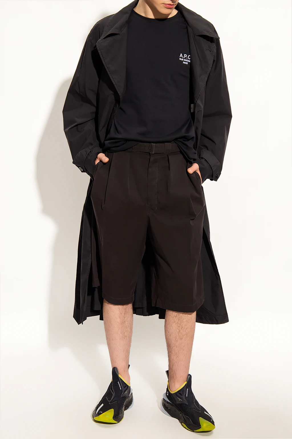 Czarne szorty Lemaire. Wykonane z bawełny. Zapinane na guziki oraz pas z klamrą. Trzy kieszenie: dwie wsuwane oraz zapinana na guzik.