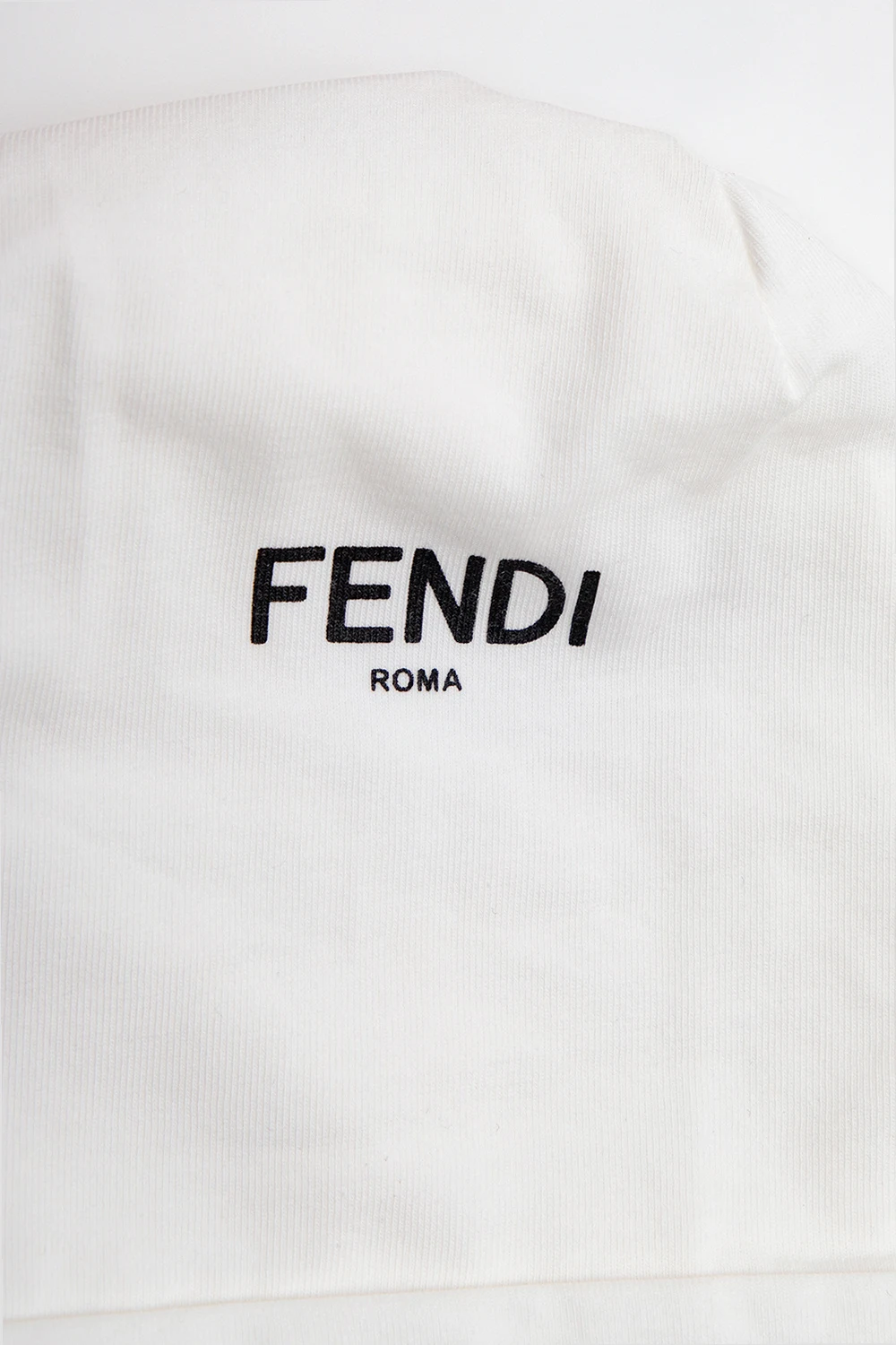 Biały zestaw: pajacyk i czapka Fendi Kids. Wykonany z bawełny. Ozdobiony nadrukiem z logo. Zapinany na zatrzaski.