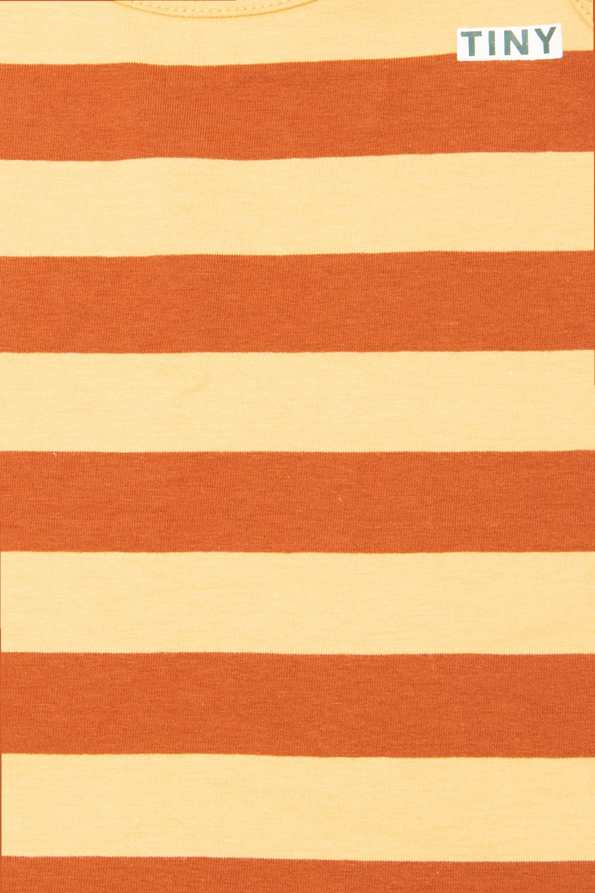 Przedstawiamy Państwu wyjątkowy Top z wzorem w paski od prestiżowej marki Tiny Cottons , który łączy w sobie casualową nonszalancję z elegancką prostotą. Ta jednoczęściowa kreacja zachwyca subtelnym połączeniem odcieni brązowego z kremowymi pasami, tworząc harmonijną całość, która przyciąga spojrzenia.