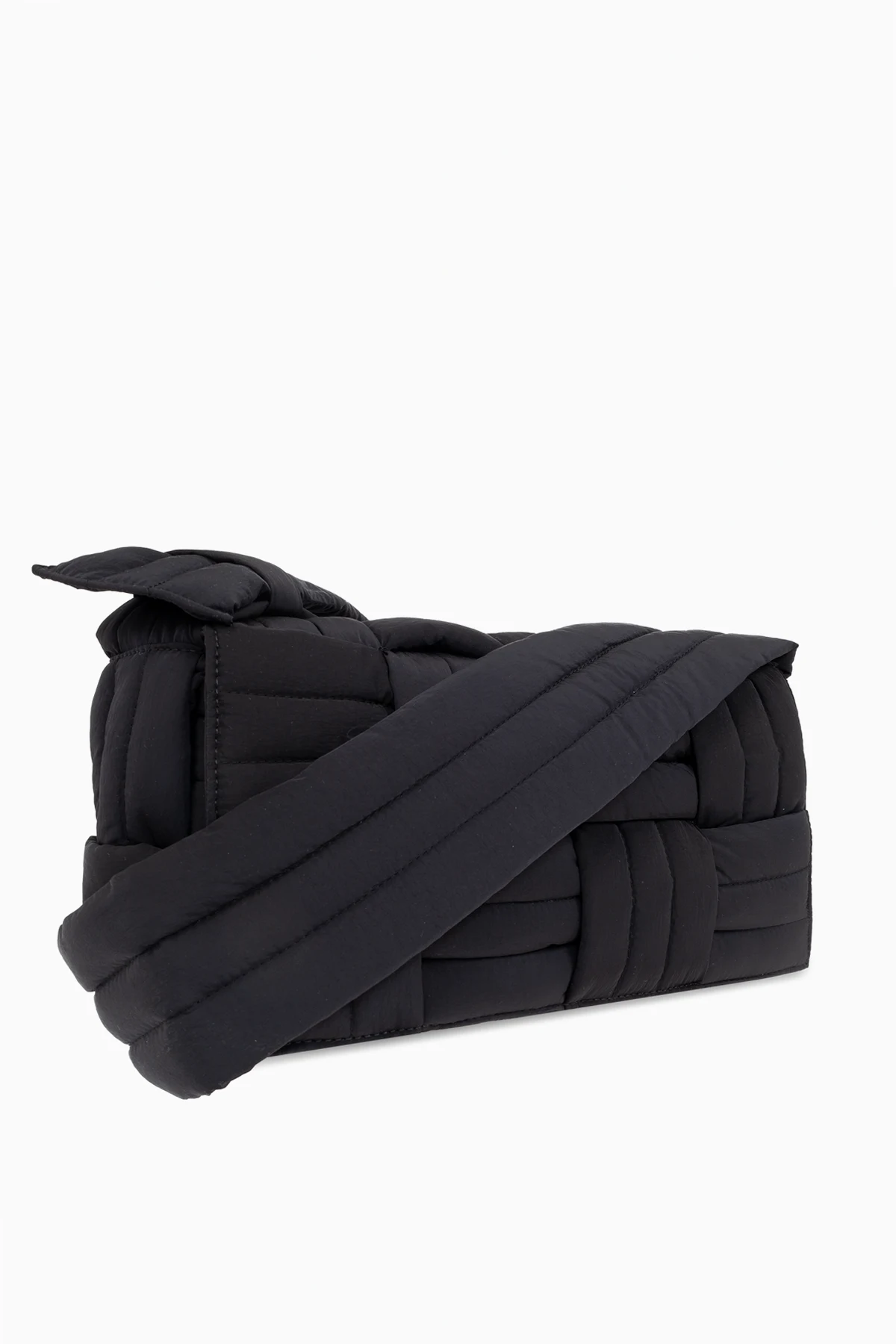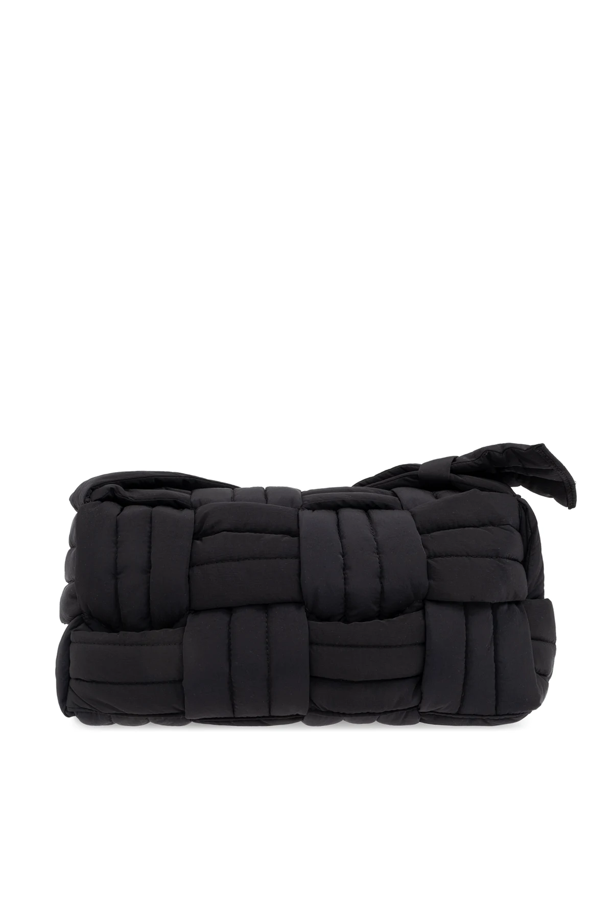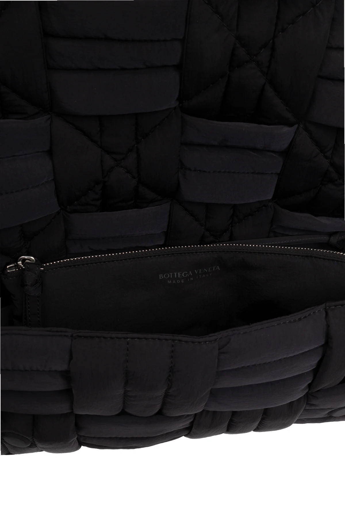 Dominująca czerń dodaje klasy i uniwersalności, czyniąc ją doskonałym towarzyszem zarówno na co dzień, jak i podczas wieczorowych wyjść. Regulowany pasek pozwala na indywidualne dopasowanie, a wnętrze torby, wyposażone w komorę oraz odpinaną zaszetkę zamykaną na zamek, zaskakuje funkcjonalnością. Wewnątrz znajduje się również wyraźnie widoczne logo Bottega Veneta , będące symbolem luksusu i autentyczności.