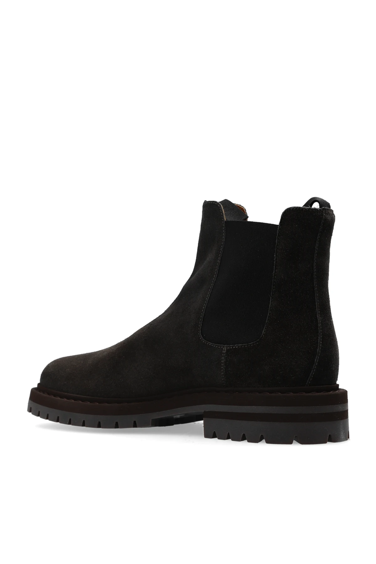 Czarne, wsuwane botki Common Projects. Wykonane z zamszu. Po bokach wszyta guma. Brązowo-szara, gumowa podeszwa.