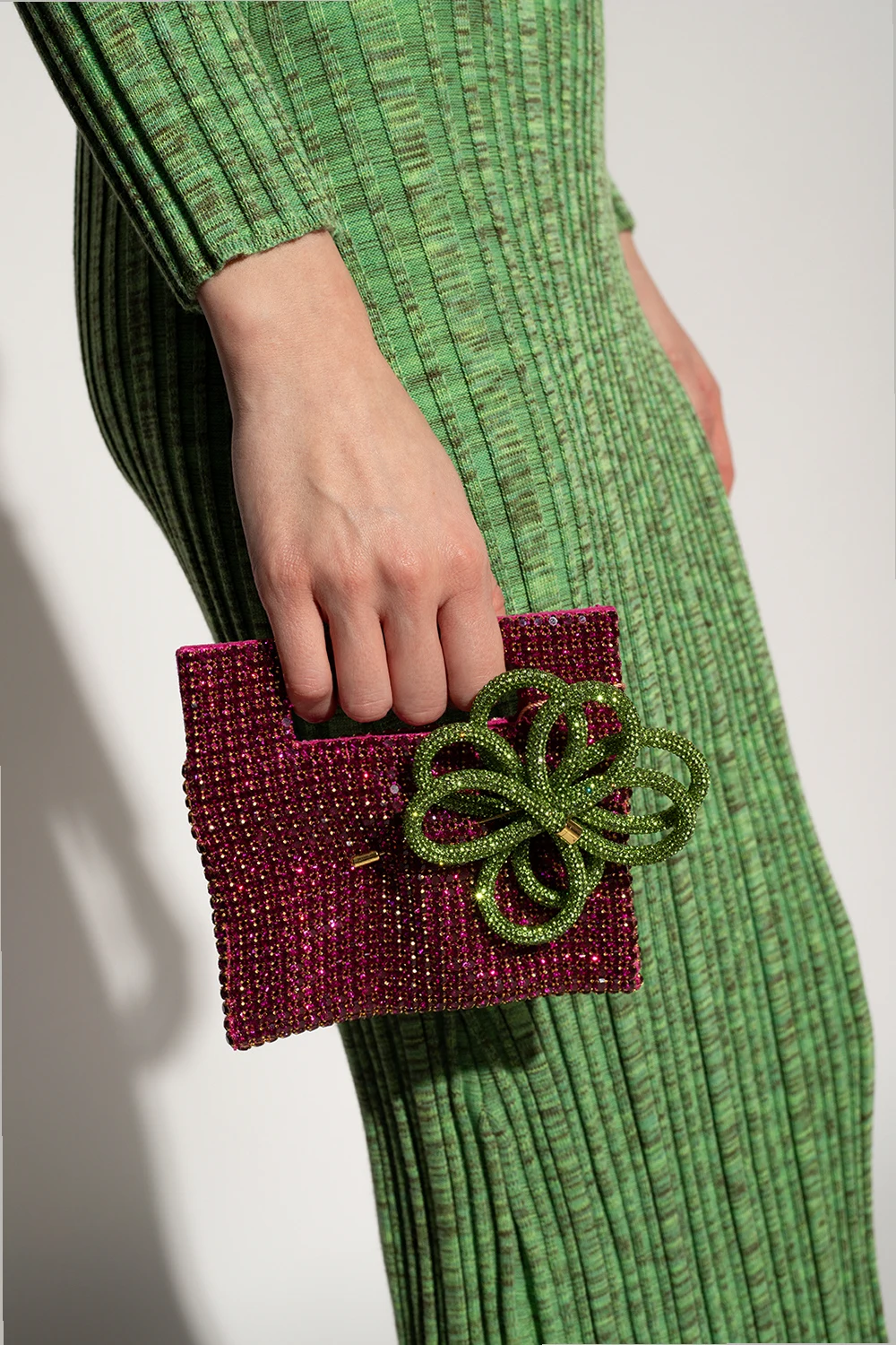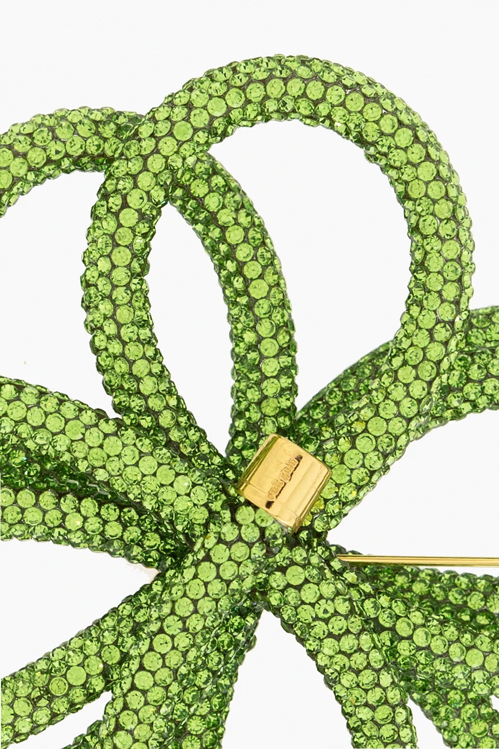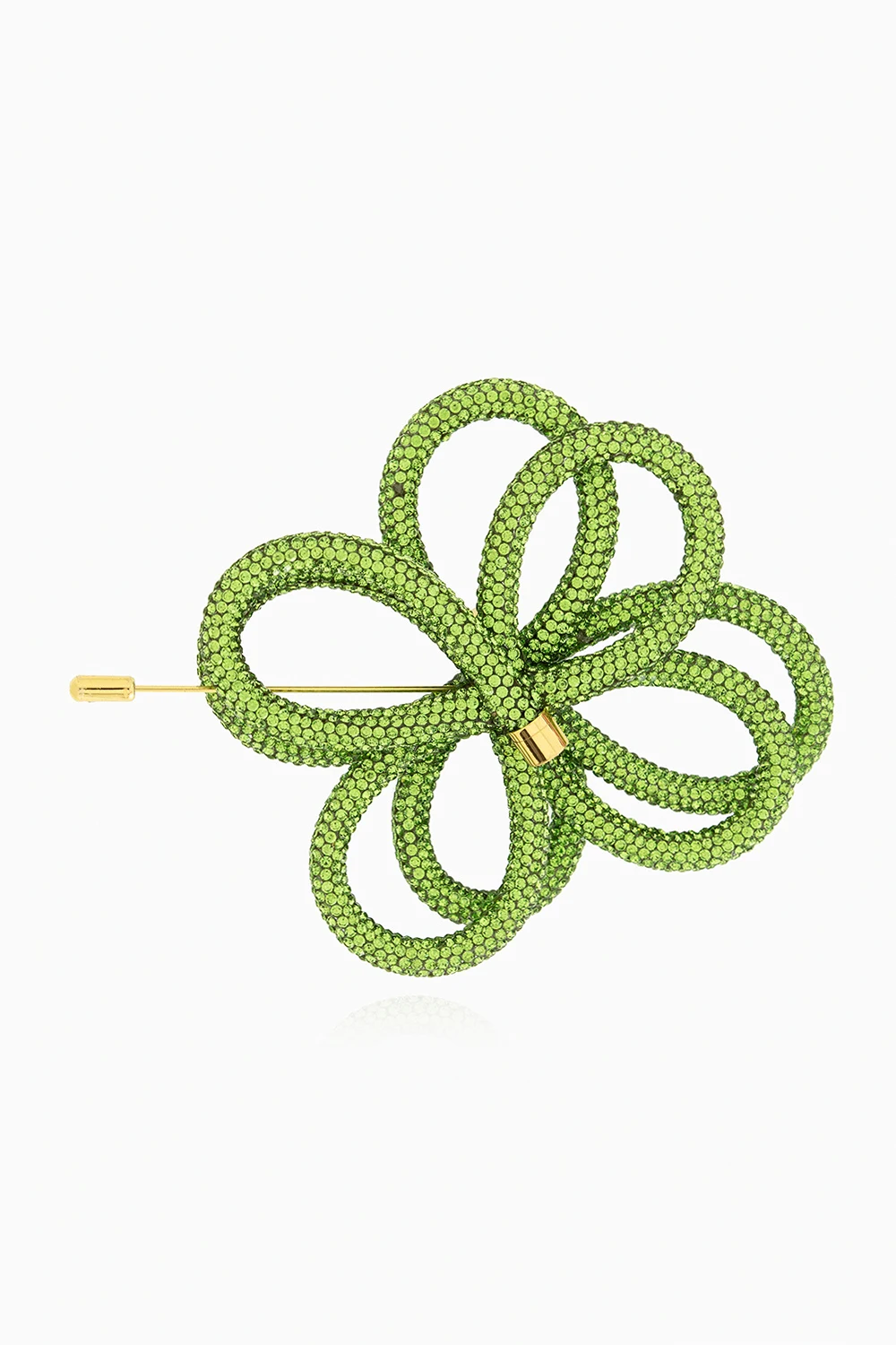 Zielona broszka w kształcie kwiatu, model ‘Bloom’ Cult Gaia. Wykonana mosiądzu. Ozdobiona połyskującymi kryształami. Zapięcie na szpilkę.
