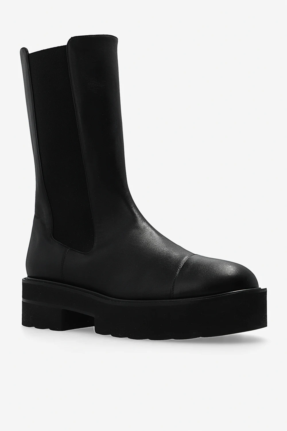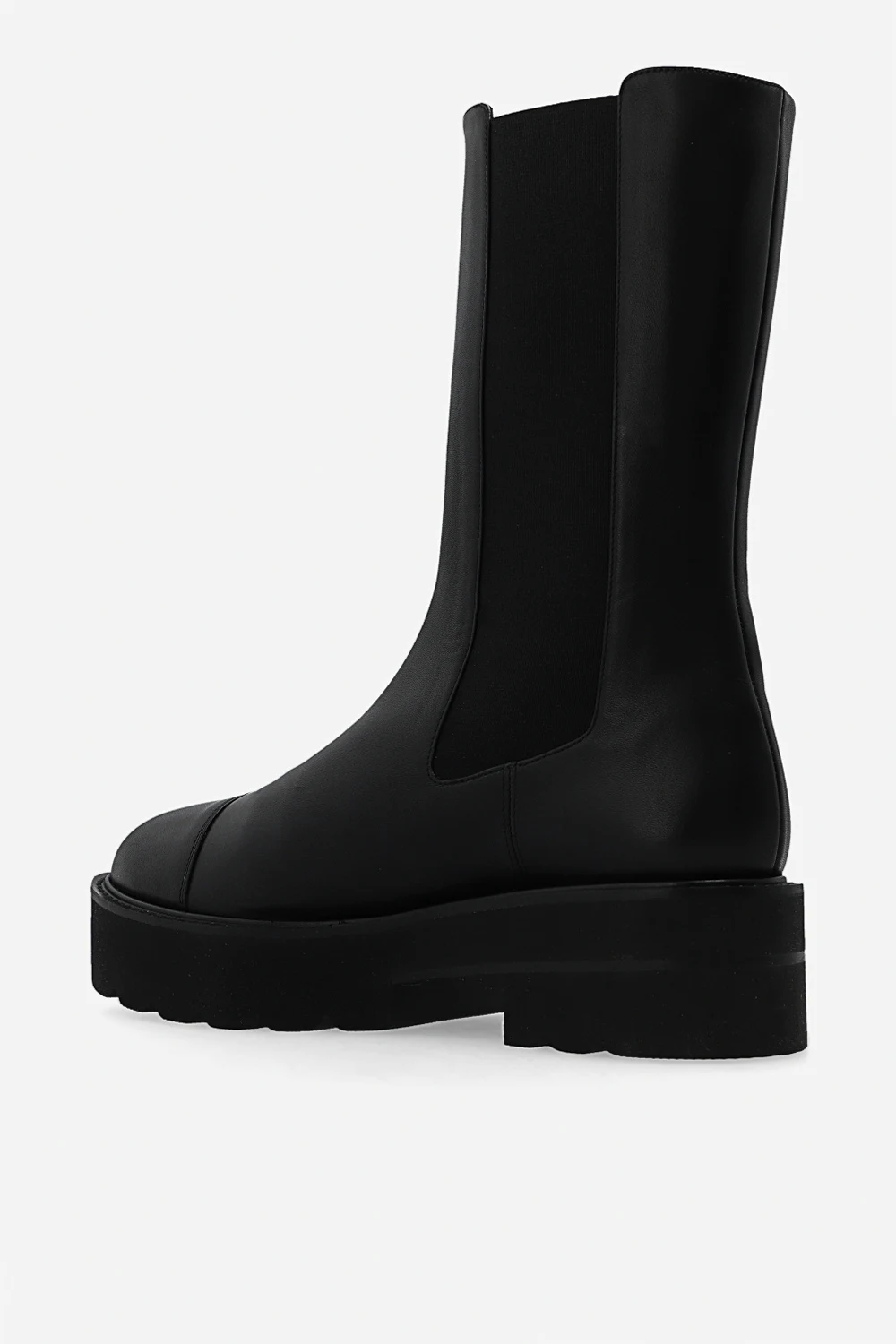 Czarne, wsuwane botki, model ‘Presley’ Stuart Weitzman. Wykonane ze skóry cielęcej. Po bokach wszyty elastyczny ściągacz. Zaokrąglony nosek. Masywna podeszwa z gumy w kolorze czarnym.