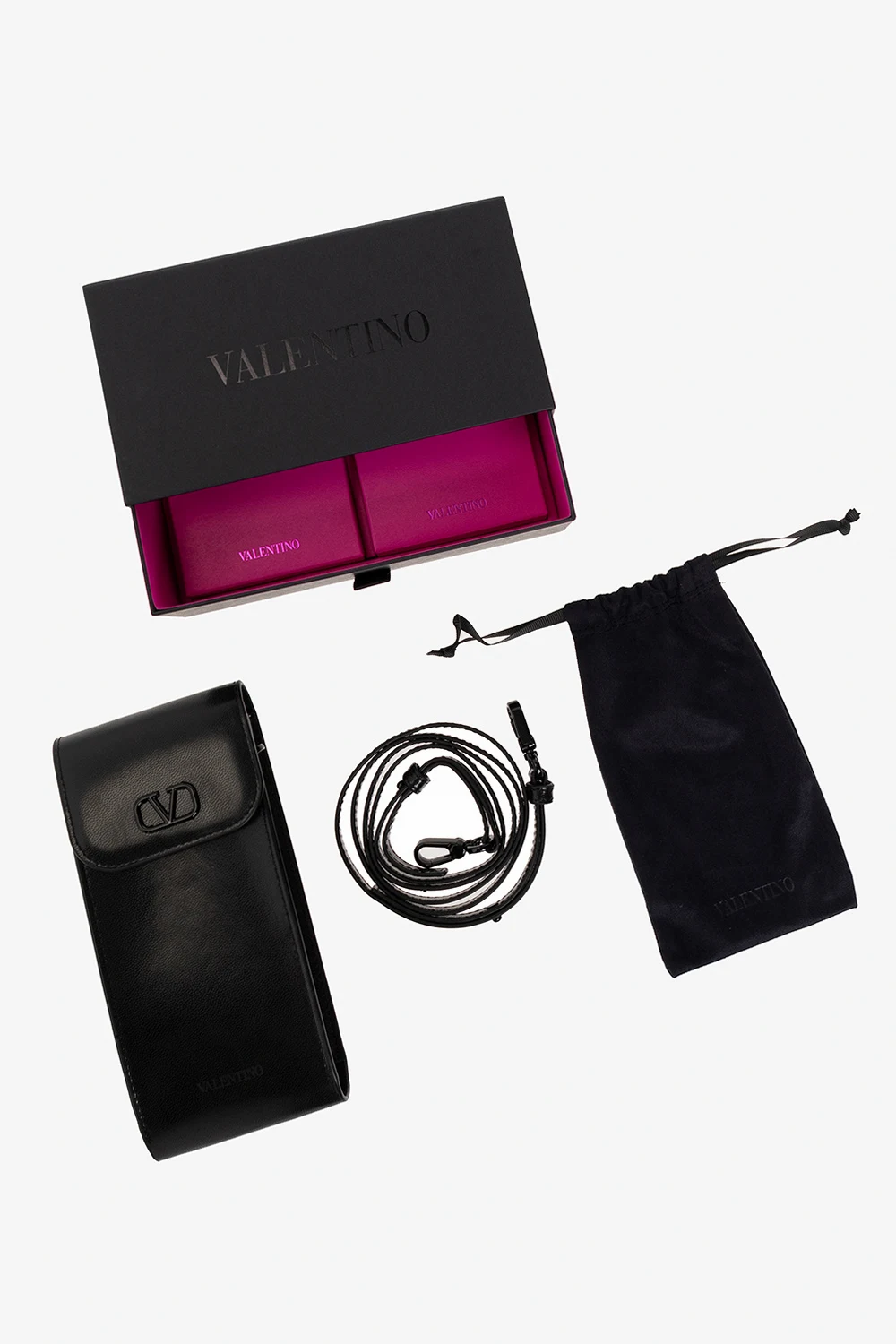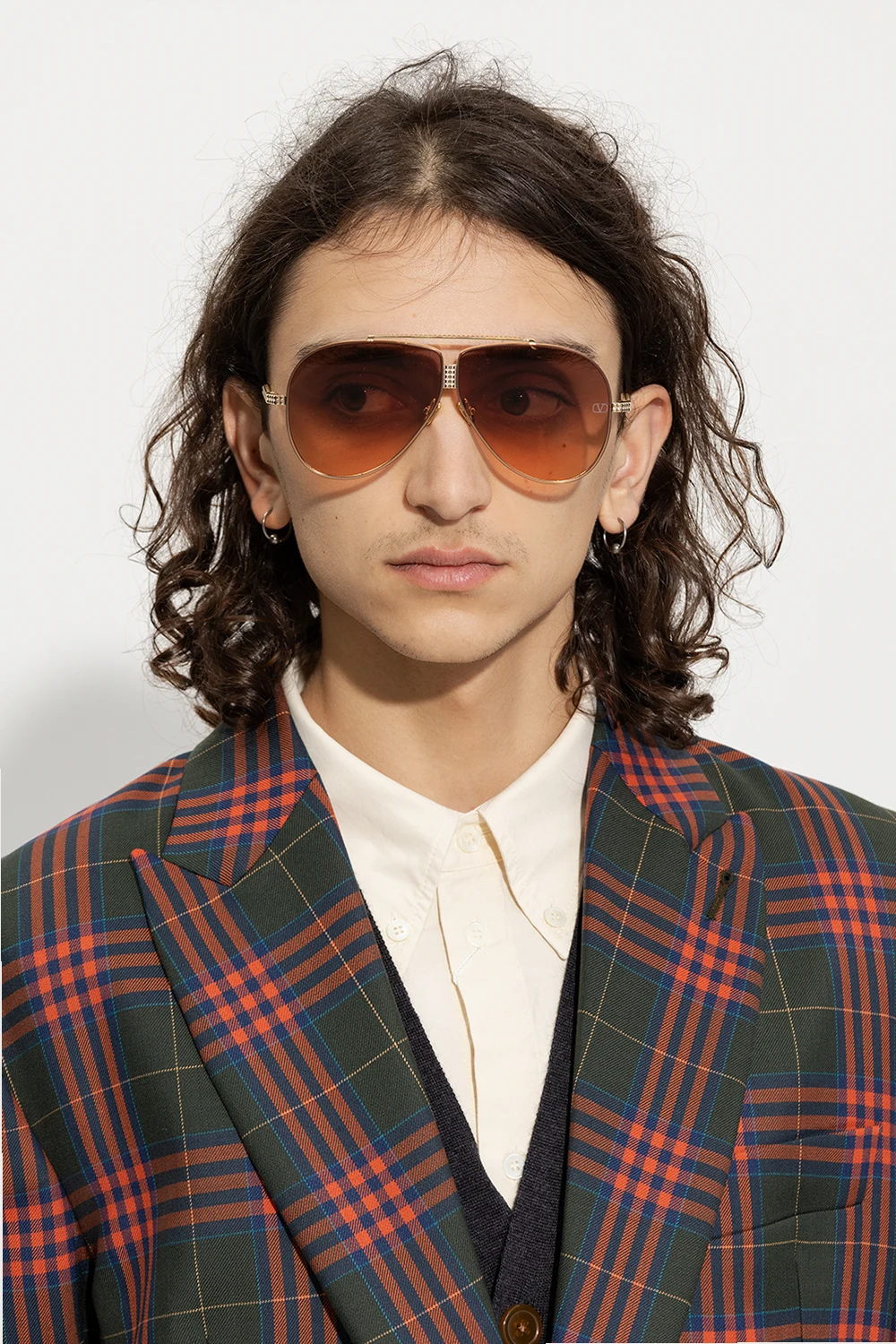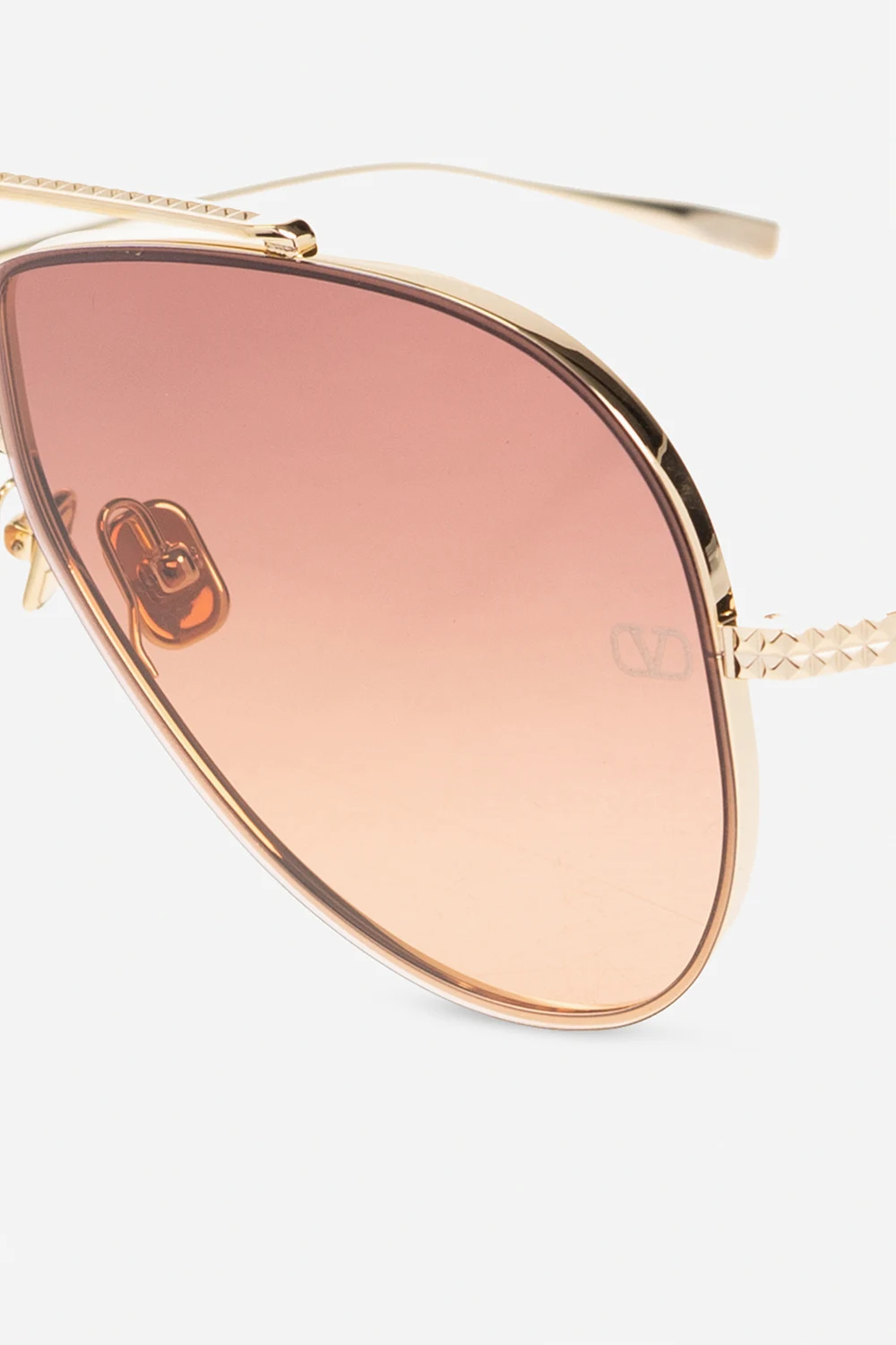 Okulary przeciwsłoneczne w kolorze złotym Red Valentino. Ozdobione wytłoczonym wzorem z logo. Brązowe szkła ze 100% ochroną przed promieniowaniem UVA/UVB. Dołączone etui.