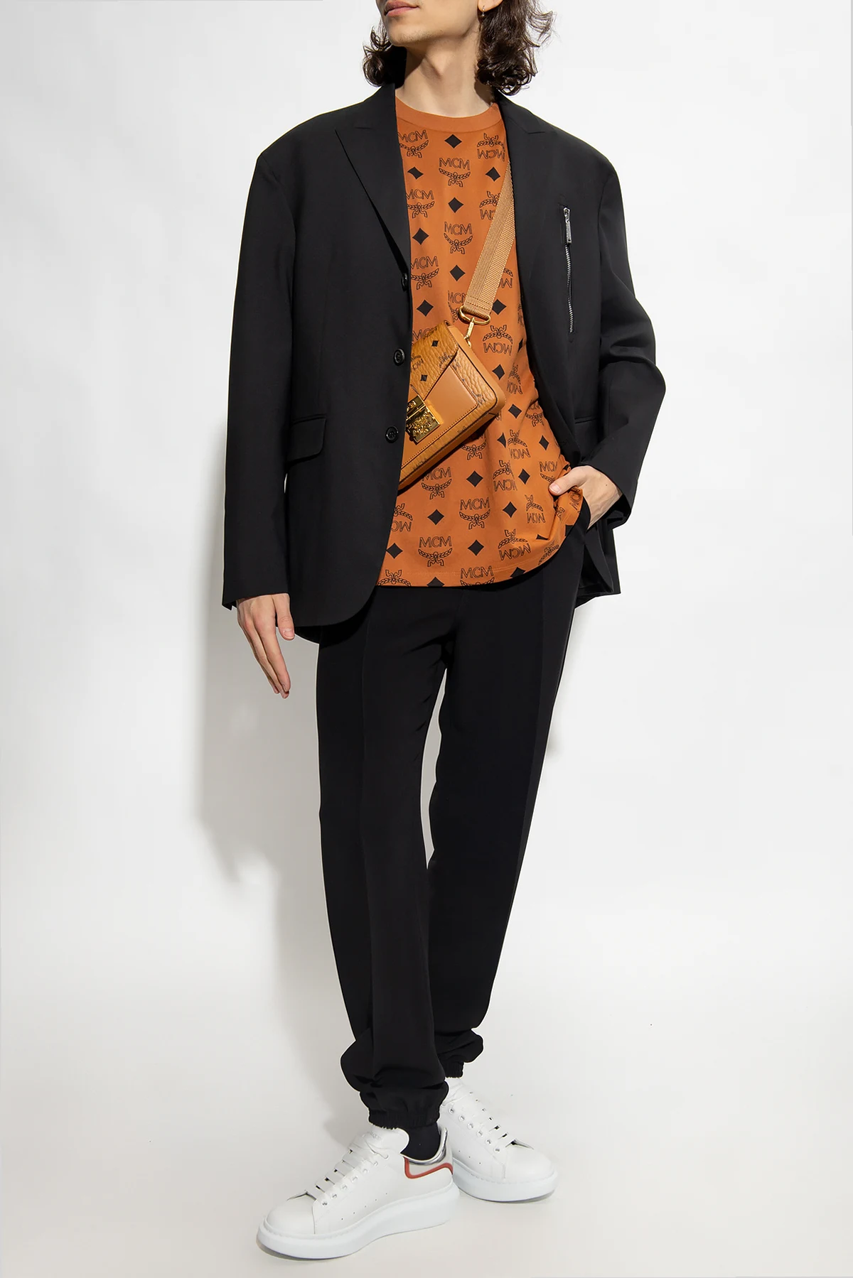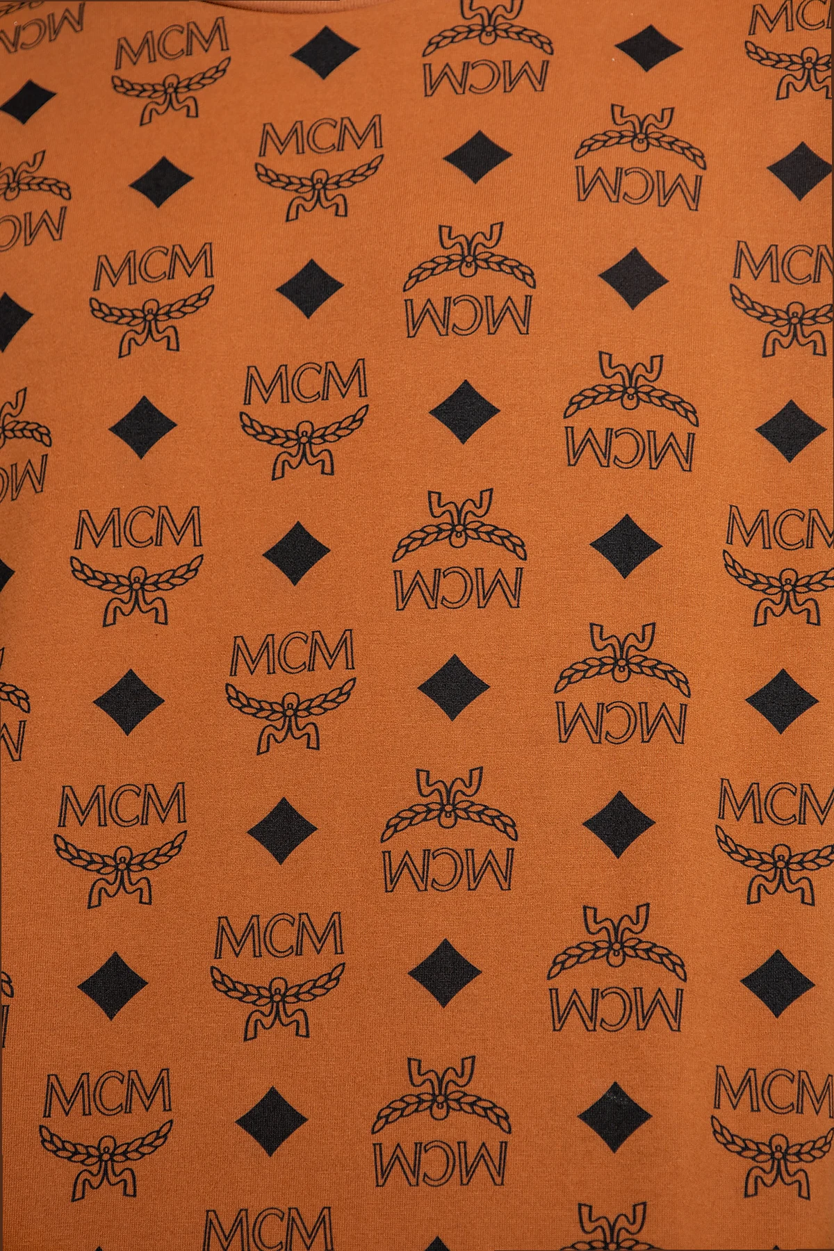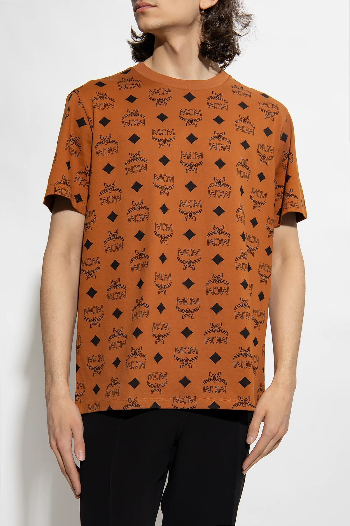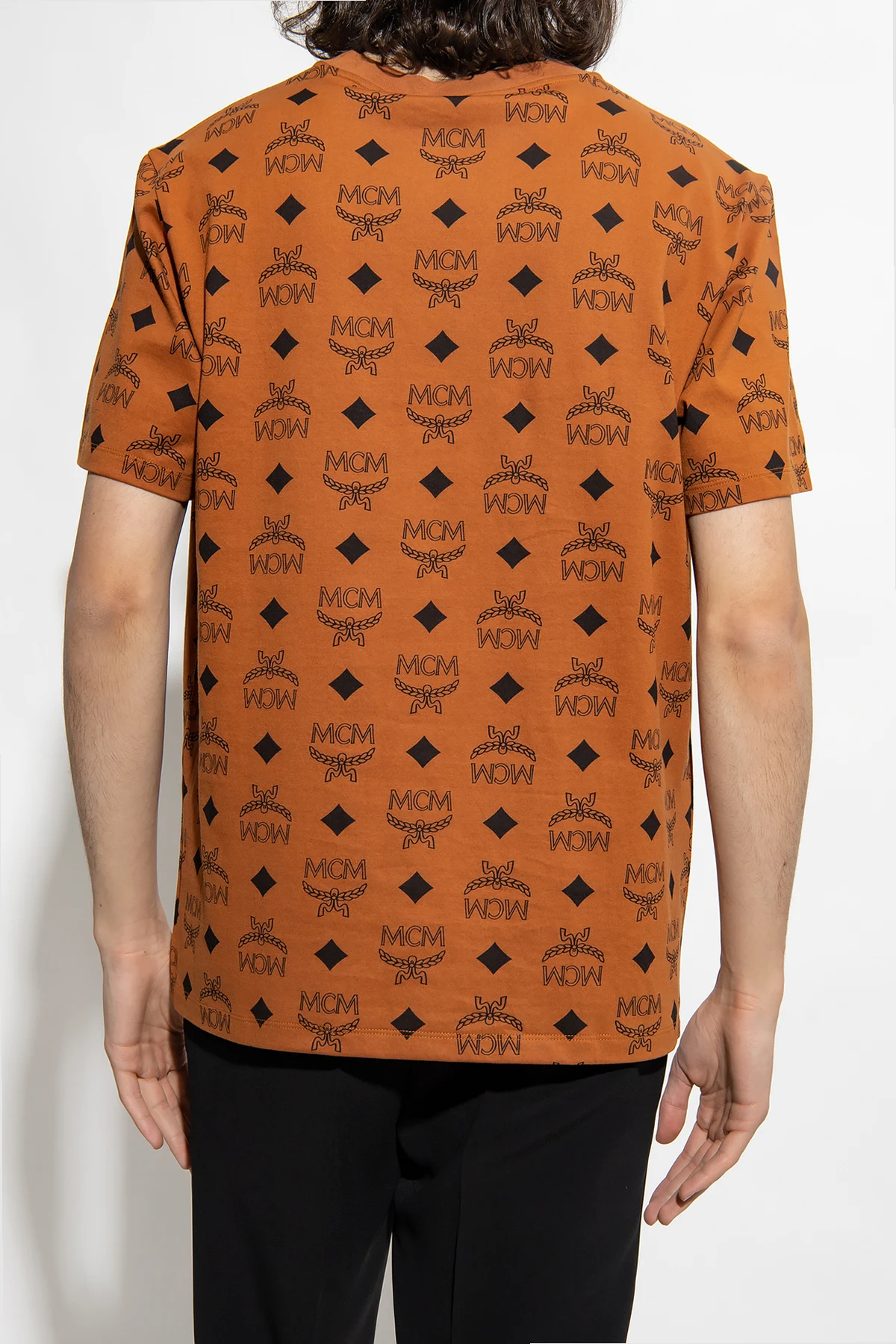 Brązowy t-shirt MCM. Wykonany z bawełny. Ozdobiony czarnym wzorem z monogramem ‘Visetos’. Okrągły dekolt wykończony ściągaczem, krótkie rękawy.