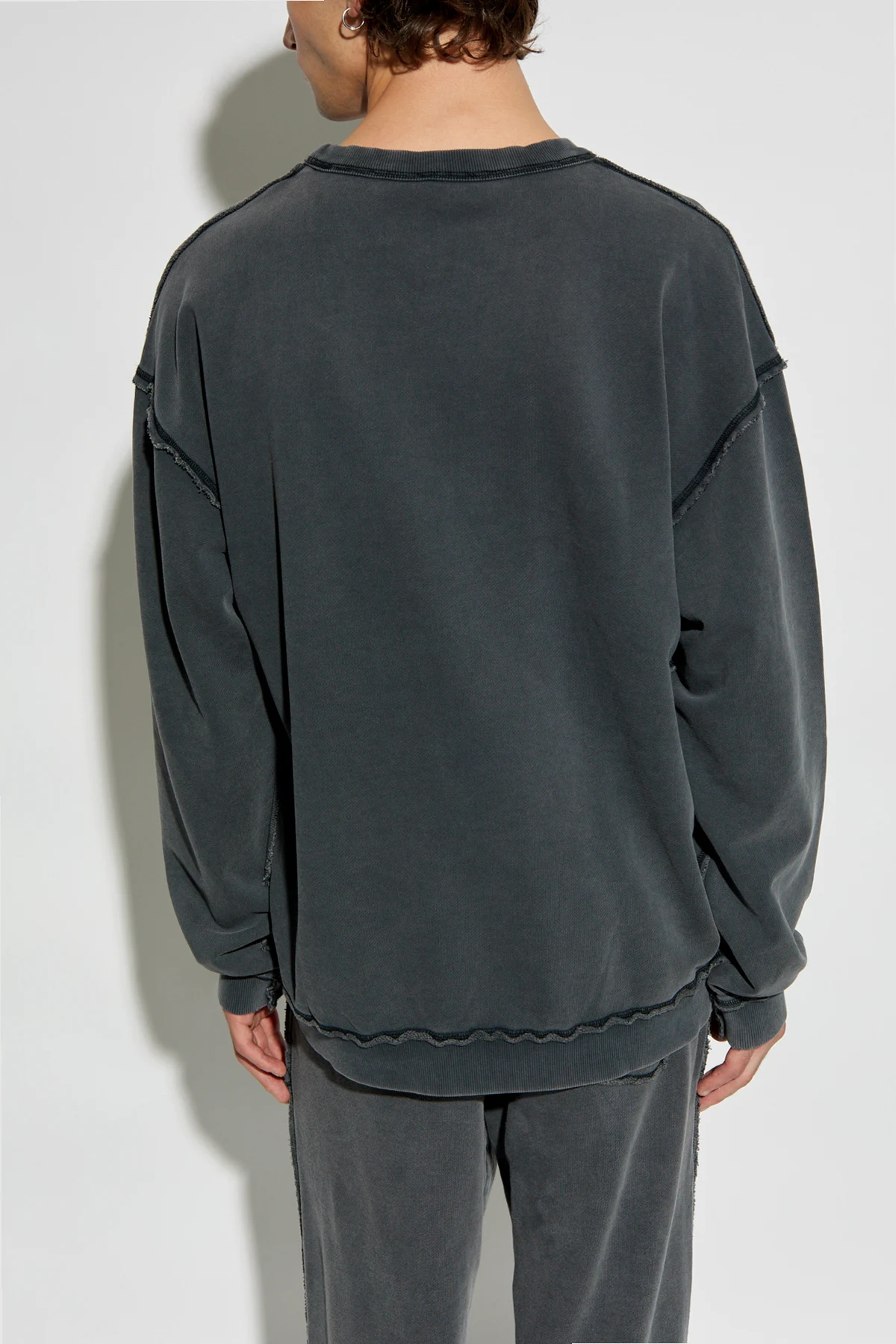 Wykonana z najwyższej jakości mieszanki bawełnianej , ta bluza zapewnia zarówno komfort noszenia, jak i trwałość. Surowe wykończenia przy rękawach i na dole nadają jej nieformalnego, miejskiego wyglądu, który doskonale wpisuje się w casualową estetykę. Przeszycia na ramionach, oprócz swojej wzmacniającej funkcji, są subtelnym detalem ozdobnym, który podkreśla dbałość o detale, charakterystyczną dla marki Diesel.