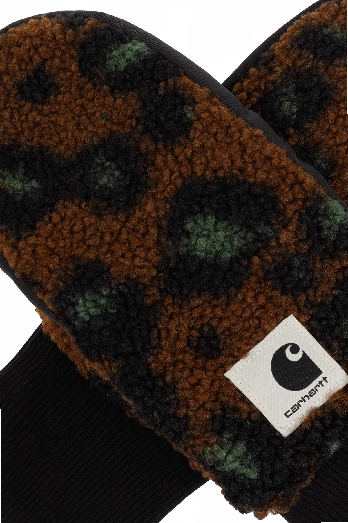 Prezentujemy Rękawice z logo z ekskluzywnej kolekcji Carhartt WIP, które harmonijnie łączą w sobie wyrafinowany styl i niezrównany komfort. Odcień brązowy, wzbogacony czarnymi i zielonymi plamkami, przywodzącymi na myśl subtelny wzór zwierzęcy, sprawia, że produkt ten wyróżnia się na tle innych. Materiał przypominający miękki, futrzasty materiał, zapewnia nie tylko ciepło, ale także niezrównaną wygodę użytkowania.