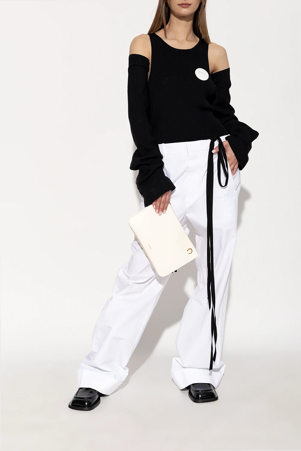 Czarne mokasyny Proenza Schouler. Wykonane z jagnięcej skóry. Dekoracyjne przeszycia. Kwadratowy nosek. Gruba, czarna podeszwa.