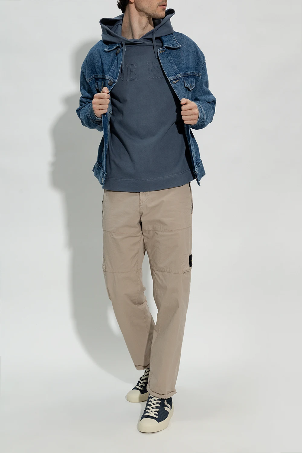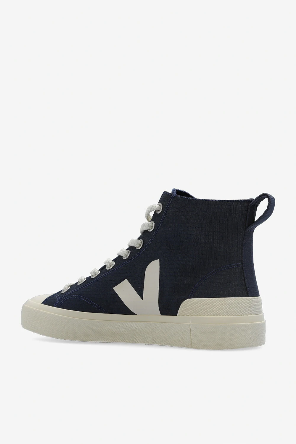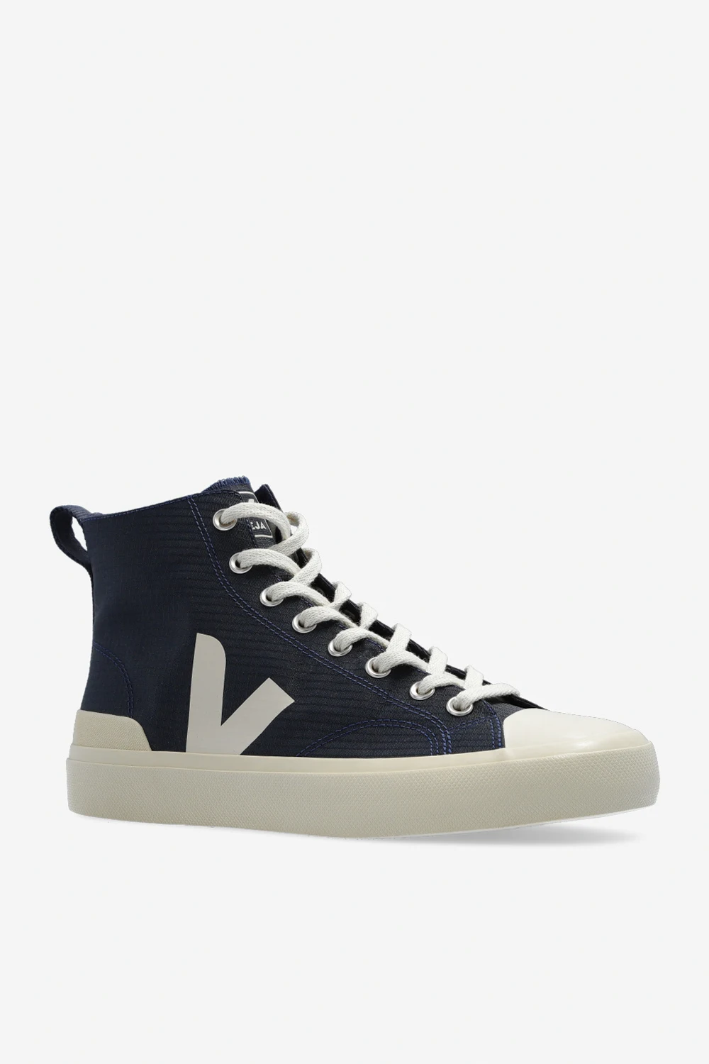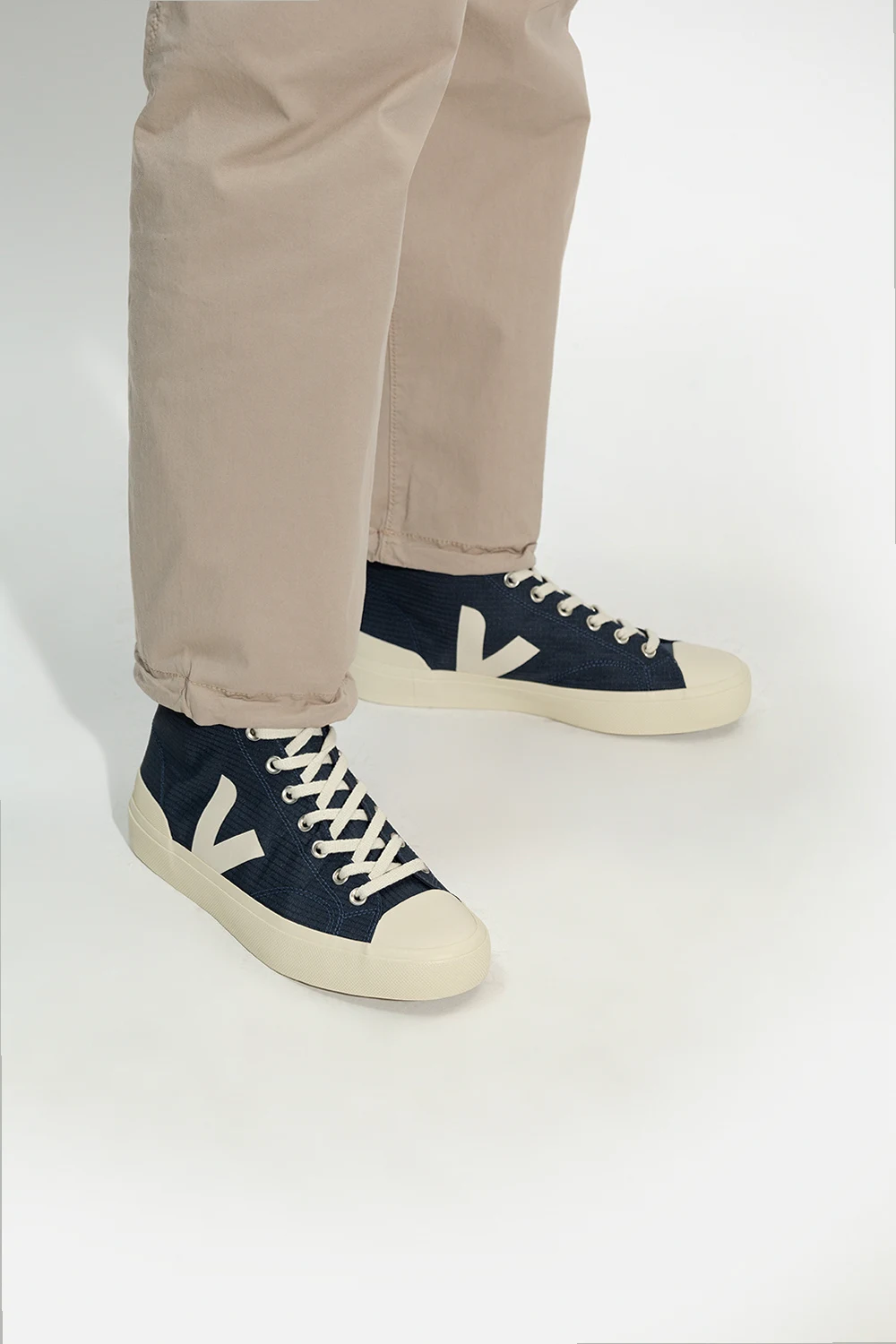 Granatowo-kremowe, sznurowane buty sportowe, model ‘Wata II’ Veja. Wykonane z materiału. Ozdobione logo. Kremowa, gumowa podeszwa.