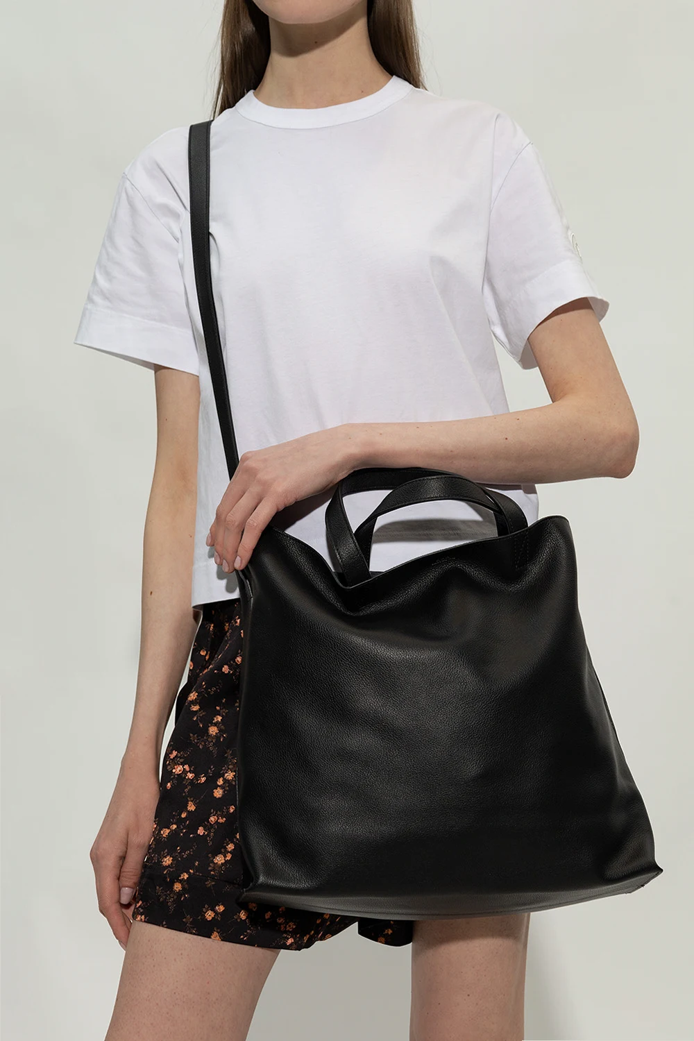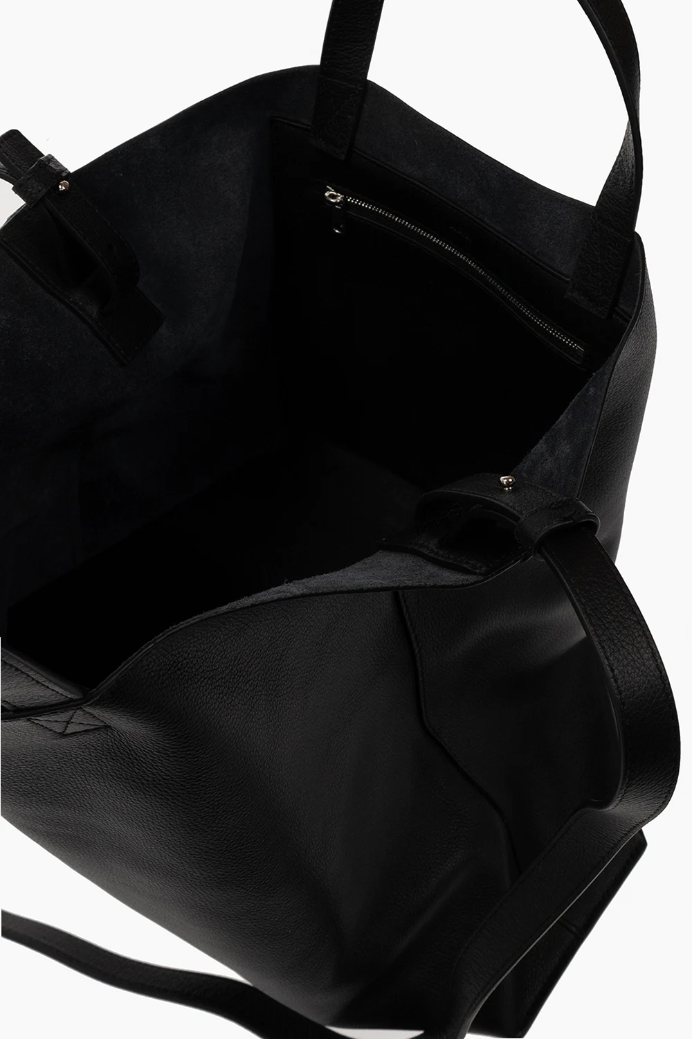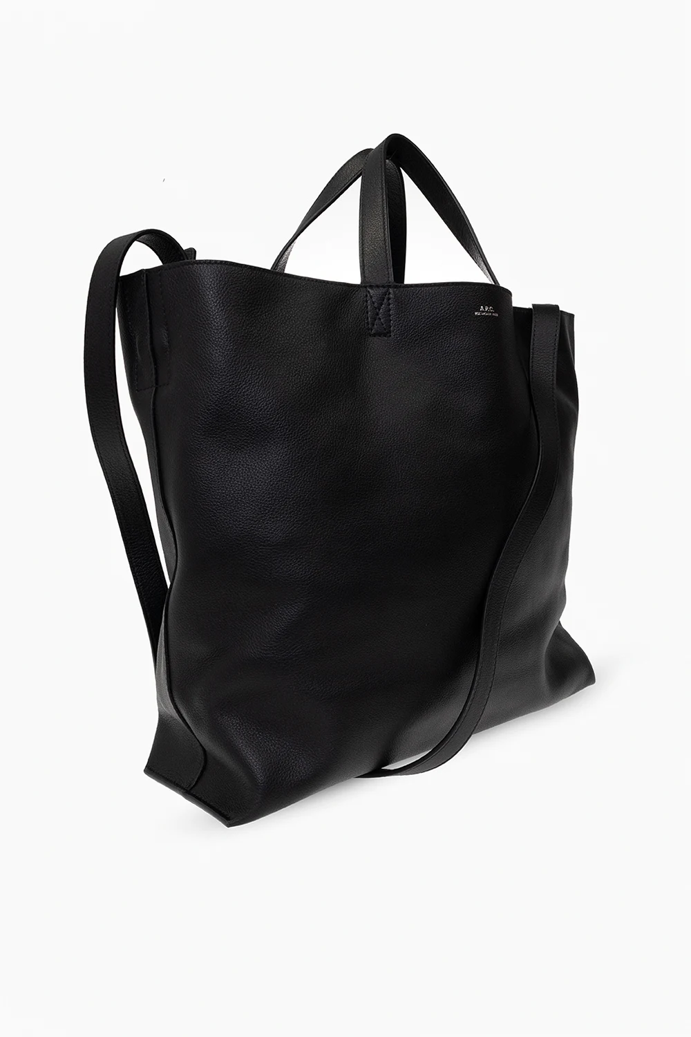 Czarna torba na ramię, model 'Cabas Maiko Medium' A.P.C. Wykonana ze skóry. Ozdobiona nadrukowanym logo w kolorze srebrnym. Dwie półokrągłe rączki. Odpinany, regulowany pas. Wewnątrz komora z kieszenią zamykaną na zamek. Metalowe elementy w kolorze srebrnym.