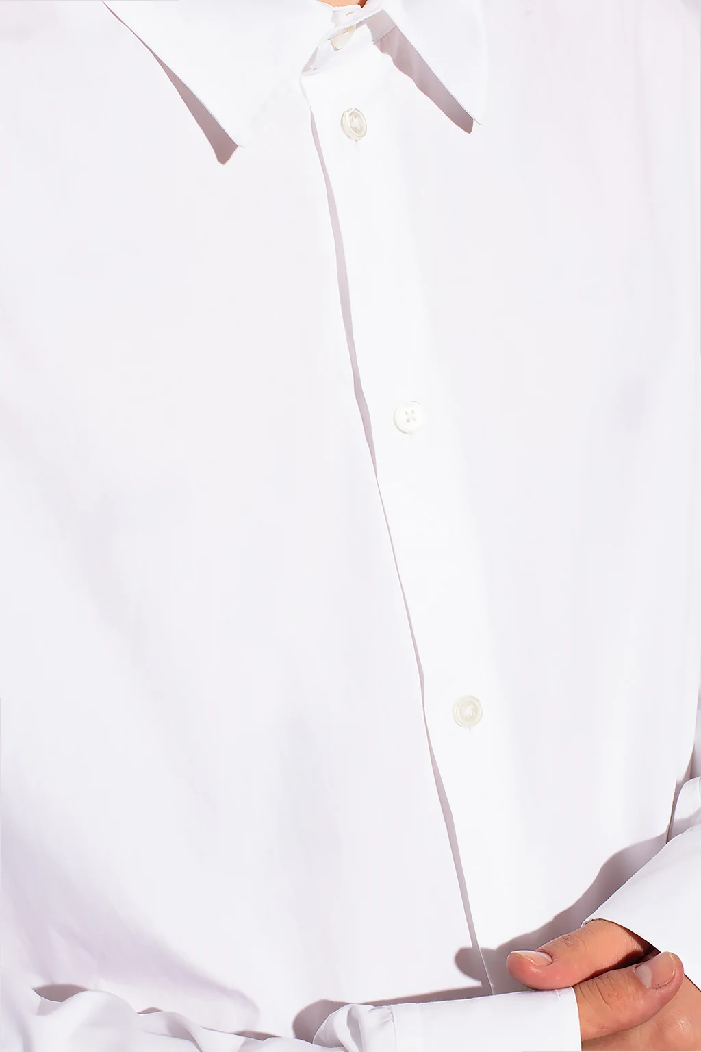 Biała, bawełniana koszula, model ‘Roy’ Ann Demeulemeester. Zapinana na guziki. Długie rękawy, mankiety zapinane na guzik.