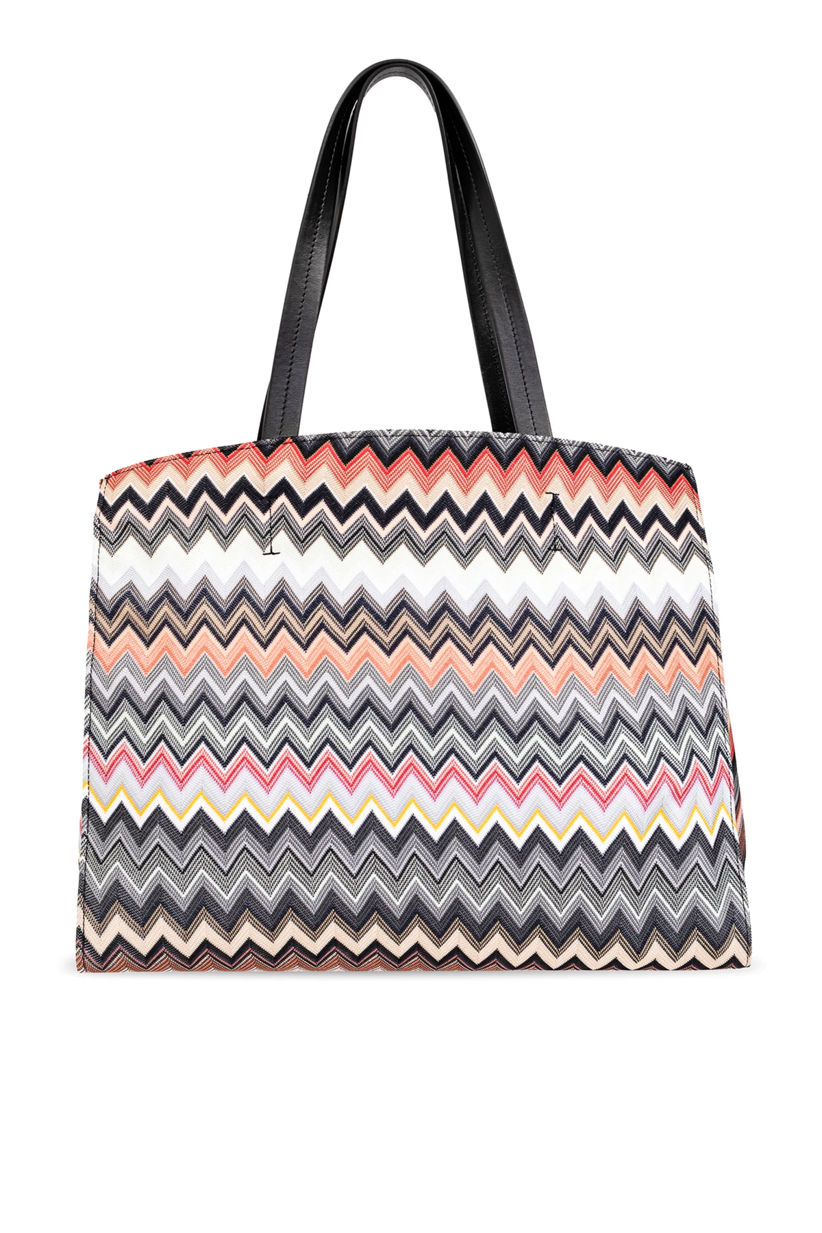 Zachwycająca torba typu ‘shopper’ od renomowanego projektanta Missoni , łączy w sobie wyszukaną elegancję z funkcjonalnością, stając się tym samym niezbędnym dodatkiem dla każdej kobiety ceniącej sobie wyrafinowany styl. Wzór w kształcie zygzaków, nawiązujący do popularnych motywów chevron, tworzy niepowtarzalną mozaikę barw - od subtelnych odcieni szarości, przez stonowaną biel i czerń, aż po energetyzujące akcenty pomarańczu i żółci. Całość dopełniona jest solidnymi rączkami, wykonanymi z wysokiej jakości materiału skóropodobnego w głębokiej czerni, zapewniając trwałość i komfort użytkowania.