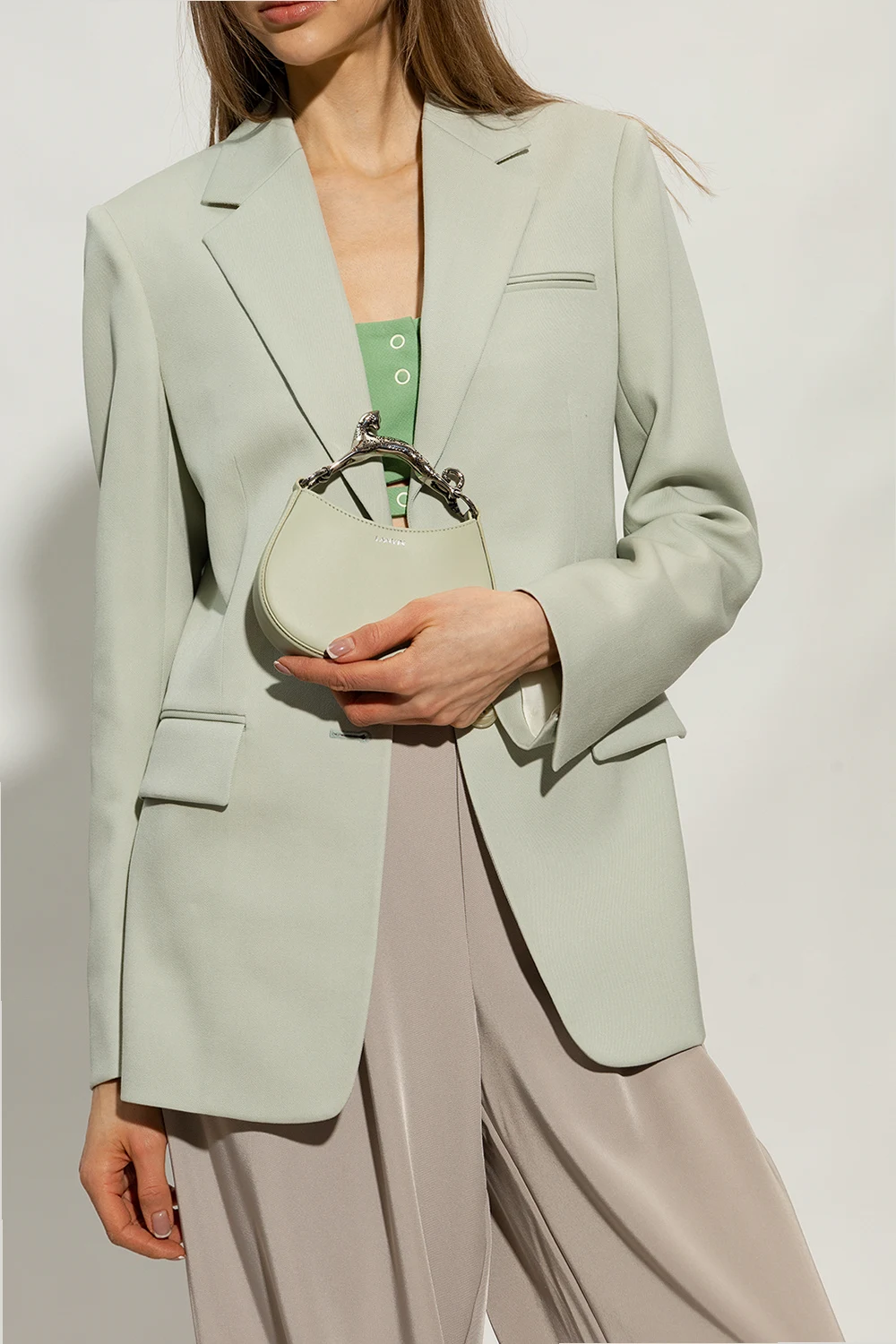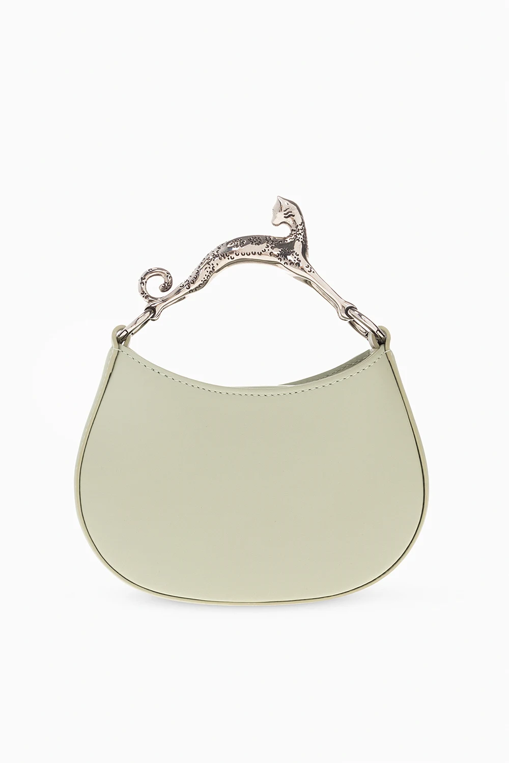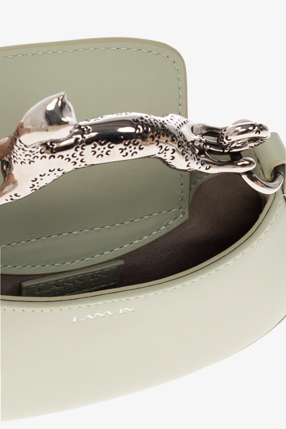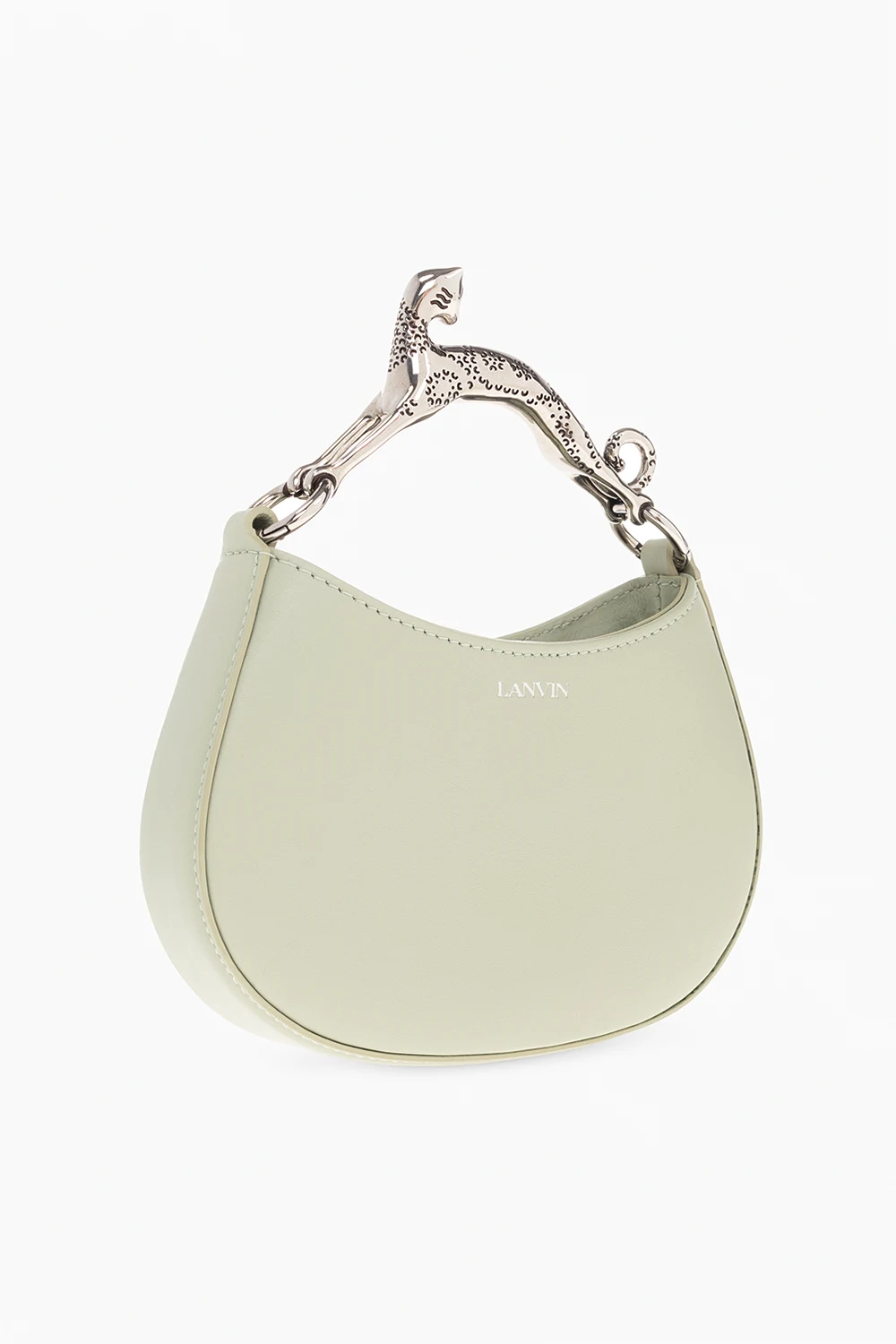 Jasnozielona torba na ramię, model ‘Hobo Cat Nano’ Lanvin. Wykonana ze skóry cielęcej. Zamknięcie na magnetyczny zatrzask. Z przodu nadrukowane logo. Dekoracyjna, metalowa rączka w kształcie kota. Odpinany pas na ramię. Wewnątrz komora. Metalowe wykończenie w kolorze srebrnym.