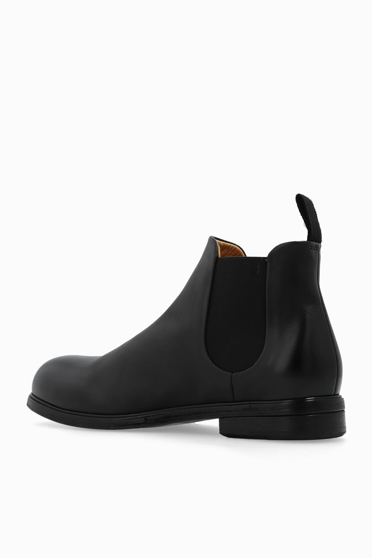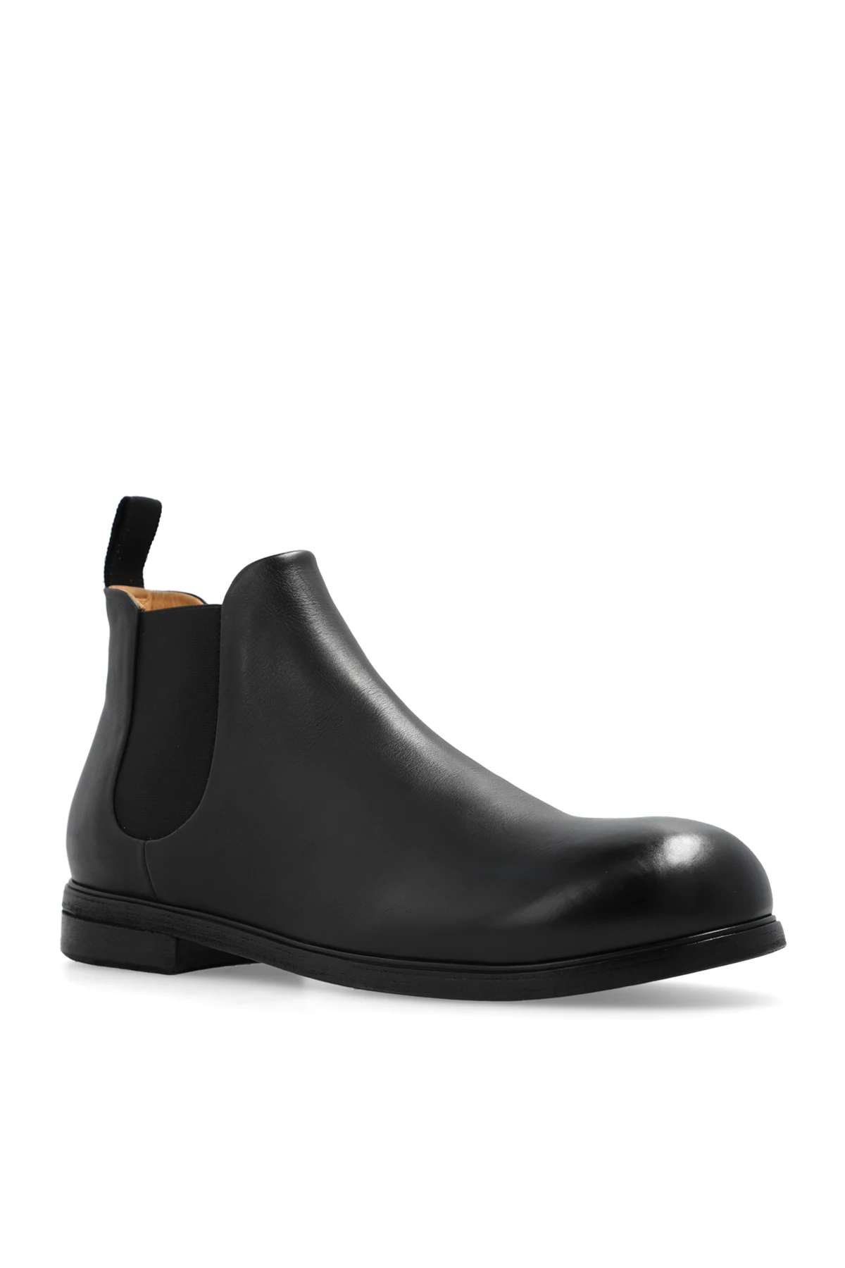 Czarne sztyblety, model ‘Zucca Media’ Marsell. Wykonane ze skóry. Po bokach wszyta guma. Czarna podeszwa wykonana ze skóry i gumy.