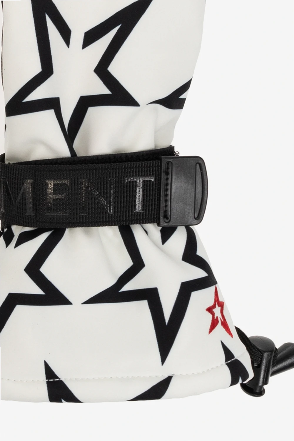 Białe rękawice narciarskie, model ‘Davos Mitts’ Perfect Moment Kids. Wykonane z wodoodpornego materiału z izolacją ‘Thinsulate’ zapewniającą ochronę przed mrozem. Wykończone motywem w logo oraz czerwonym haftem. Ściągane pasem na rzep z nadrukiem.