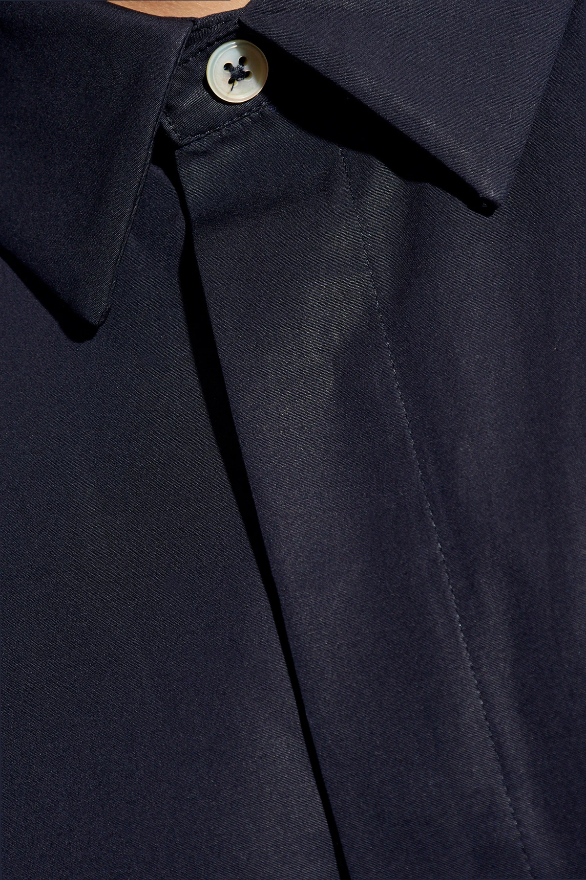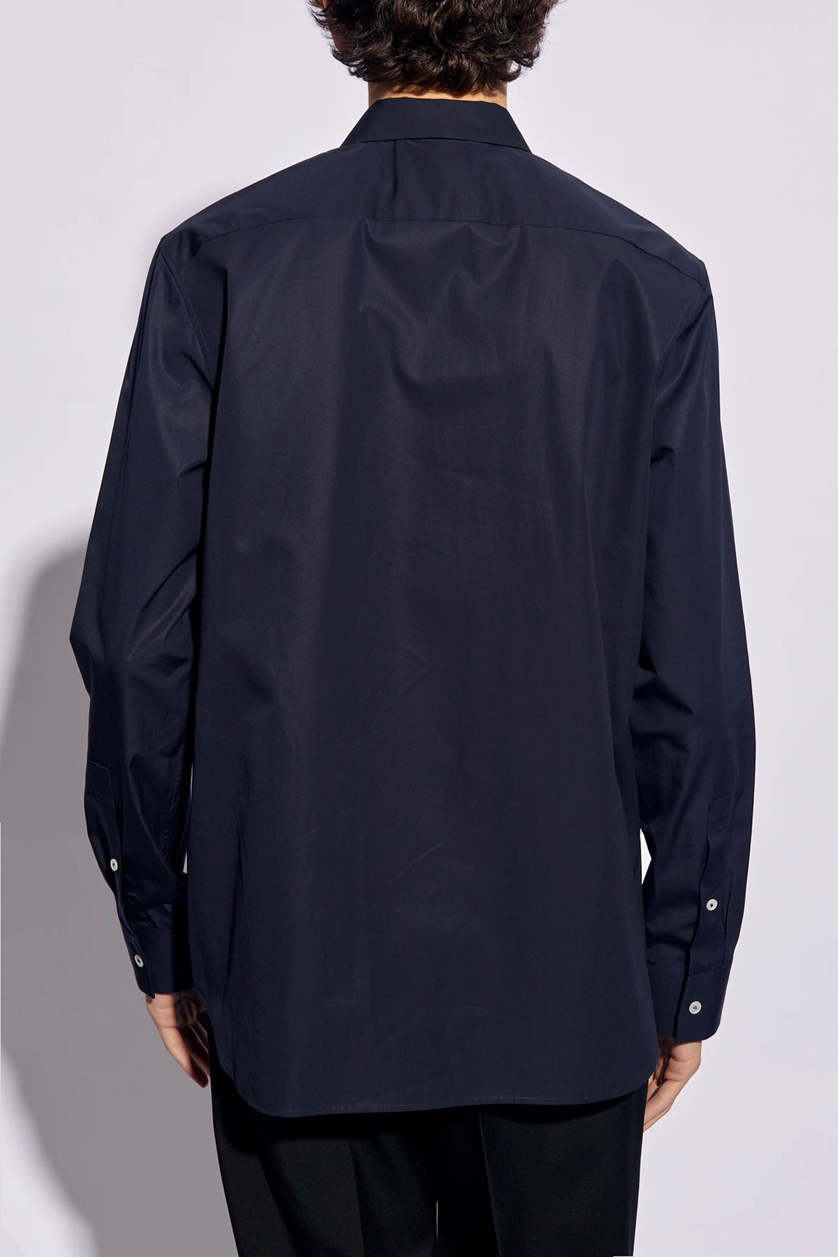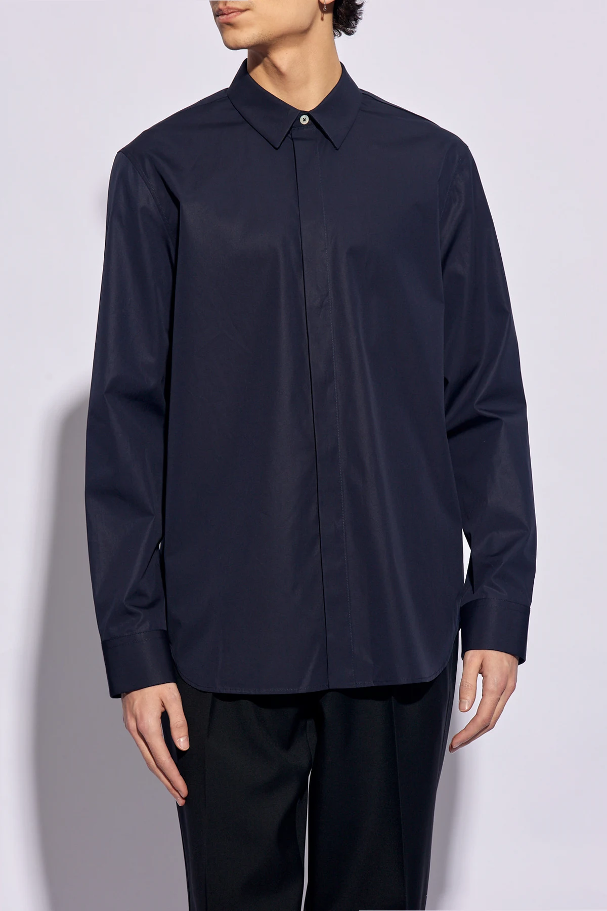 Granatowa koszula JIL SANDER. Wykonana z bawełny. Zapinana na guziki z krytą plisą. Długie rękawy.