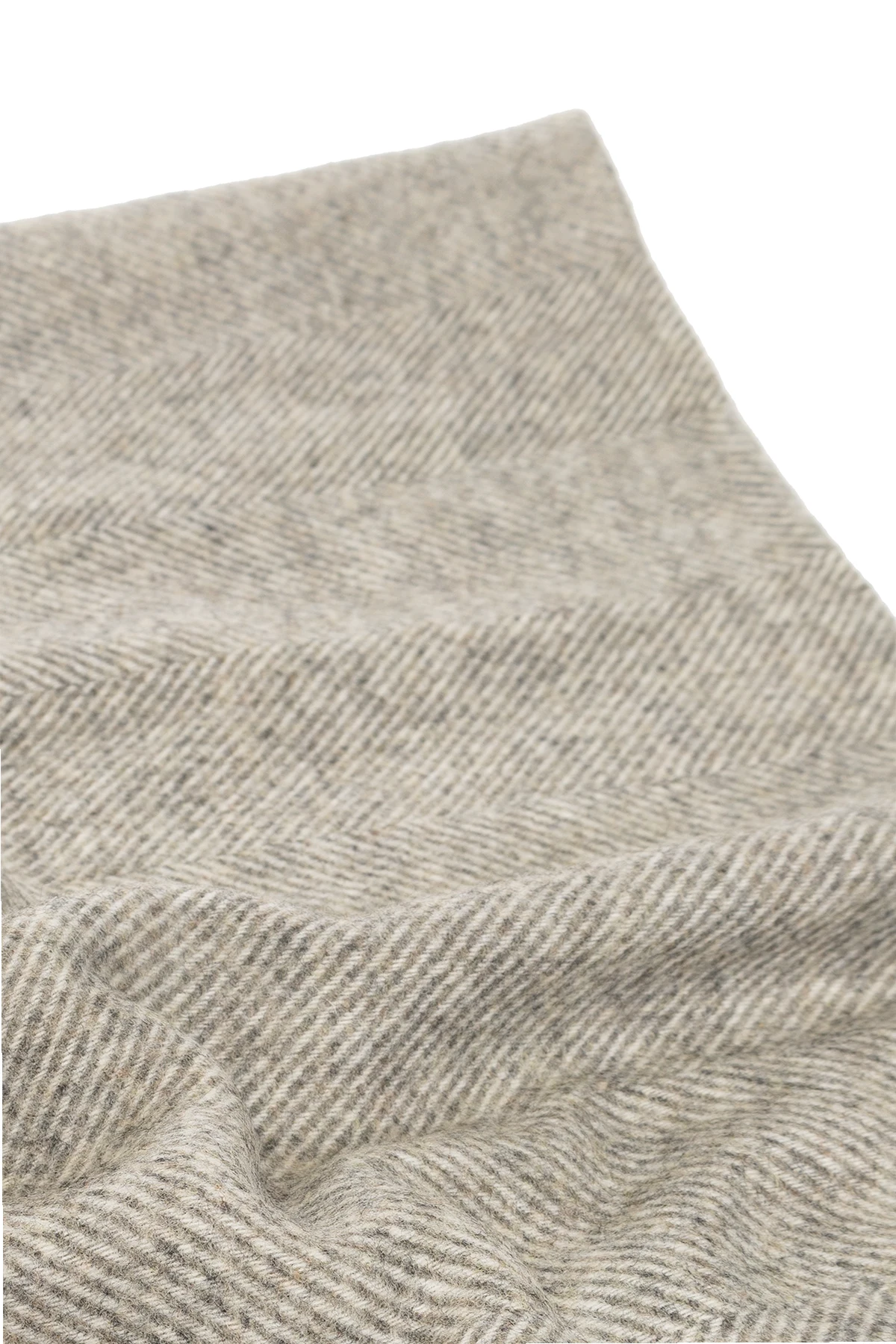 Szaro-beżowy, wzorzysty koc Norse Projects. Wykonany z jagnięcej wełny. Ozdobiony kremową naszywką z logo. Zakończony frędzlami w kolorze kremowym.