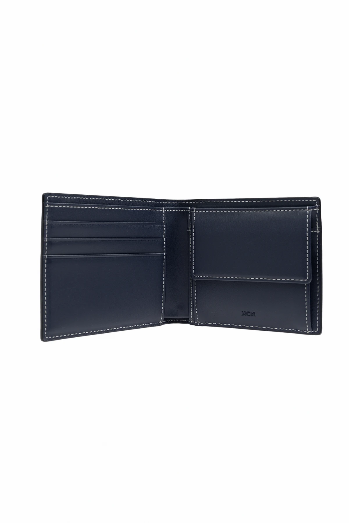 Niezaprzeczalnie elegancki, składany portfel z logo od MCM został zaprojektowany z myślą o miłośnikach luksusu, którzy cenią sobie nie tylko funkcjonalność, ale i wyrafinowany design. Wykonany z najwyższej jakości poliestru i poliuretanu , ten ekskluzywny dodatek odznacza się dominującym, głębokim odcieniem niebieskiego, będącym tłem dla powtarzającego się, kontrastowego wzoru logo. Charakterystyczna dla marki grafika , złożona z stylizowanych liter i otoczona dekoracyjnymi elementami, podkreśla prestiż i unikalność tego produktu.