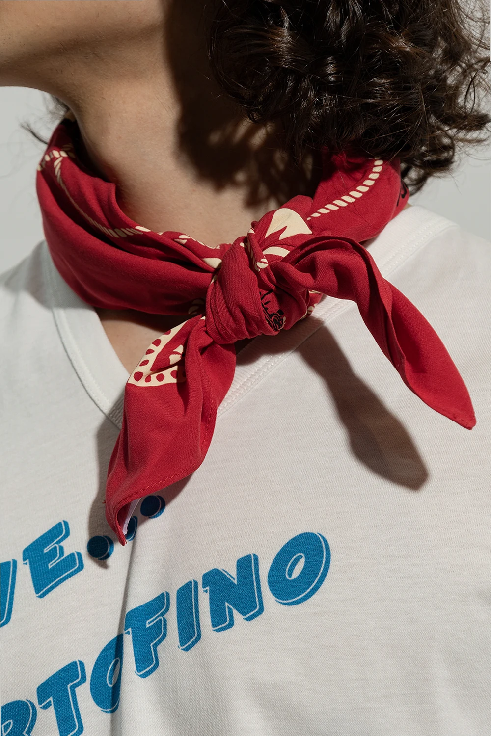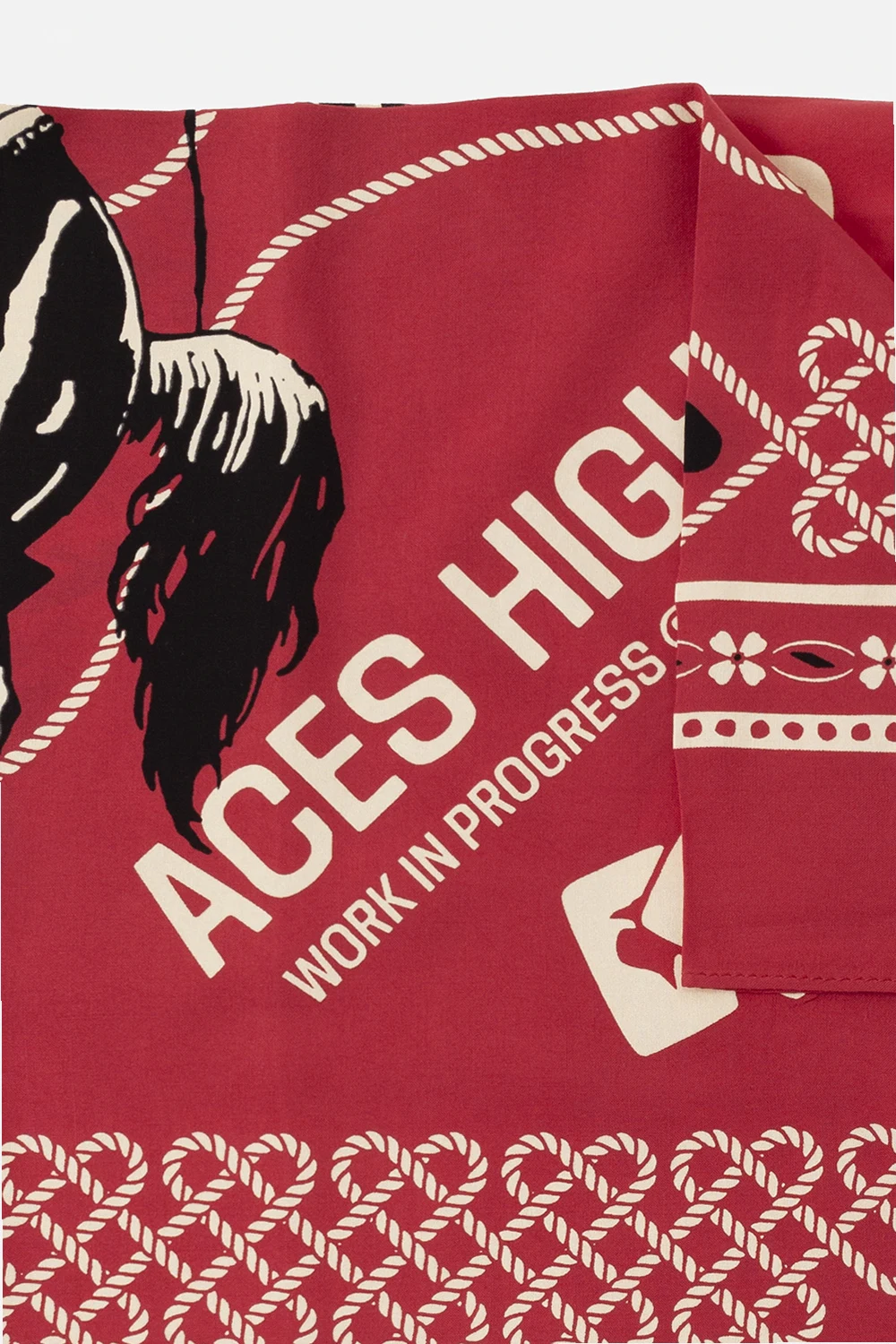 Bordowa bandana Carhartt WIP. Ozdobiona sezonowym nadrukiem w kolorze kremowo-czarnym.