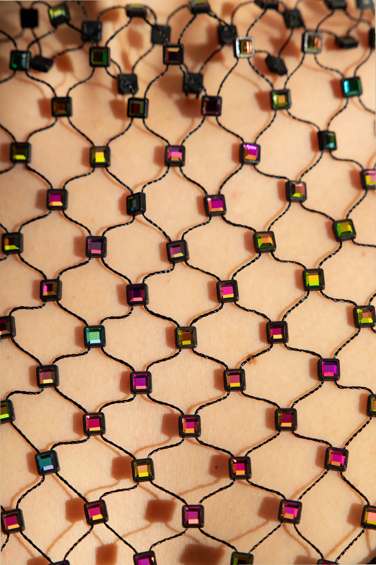 Czarny top bez rękawów, model ‘Josephine’ HERSKIND. Wykonany z siatki ozdobionej kolorowymi, połyskującymi kryształami. Okrągły dekolt. Surowe wykończenie.