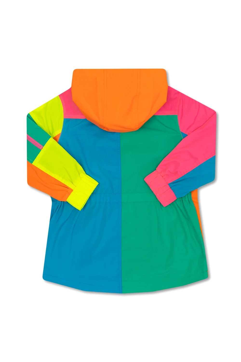 Kolorowa parka z kapturem Stella McCartney Kids. Wykonana z wodoodpornego poliestru z recyklingu. Zapinana na zamek i rzepy. Liczne kieszenie. Długie rękawy zakończone wszytą gumą. Podszewka z siatki.