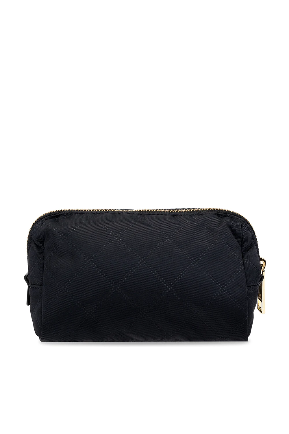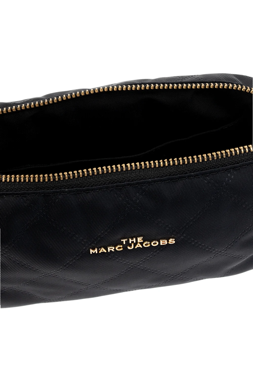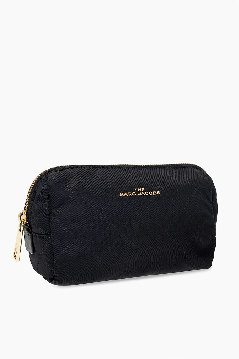 Czarna, pikowana kosmetyczka Marc Jacobs (The). Zamykana na zamek. Ozdobiona aplikacją z logo. Wewnątrz komora oraz wsuwana kieszeń. Metalowe wykończenie w kolorze złotym.