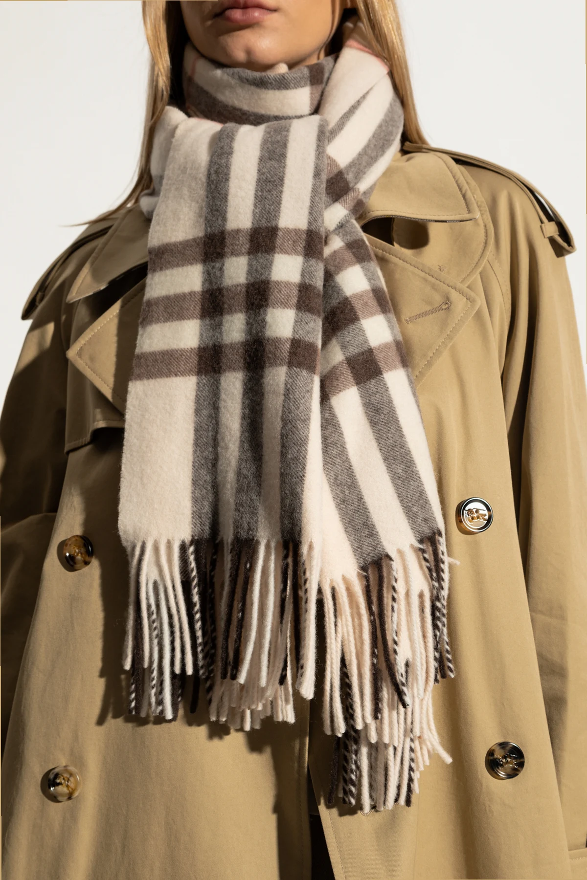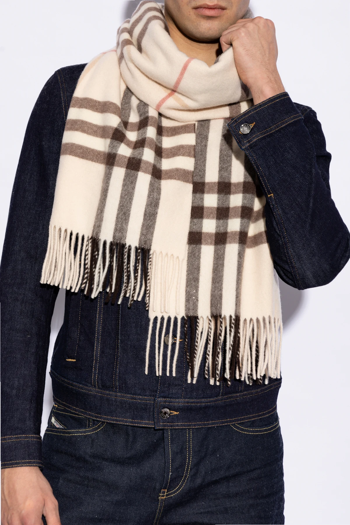 Przedstawiamy Państwu Kaszmirowy szal z frędzlami marki Burberry, będący kwintesencją elegancji i klasy. Wykonany z najwyższej jakości kaszmiru, szal ten zapewnia nie tylko niezrównaną miękkość, ale także doskonałe ciepło.