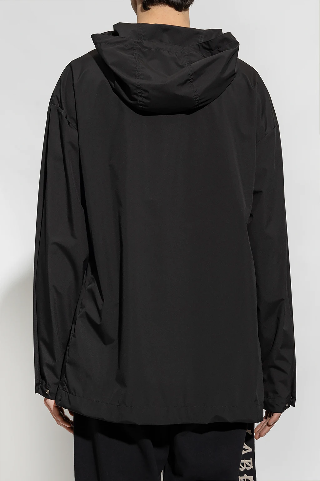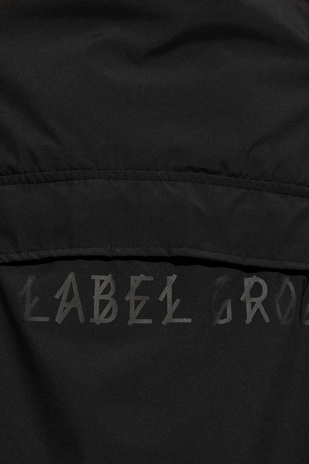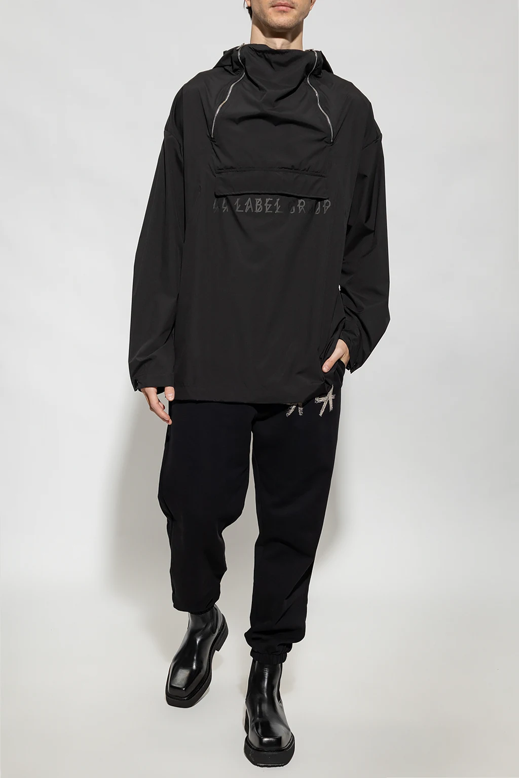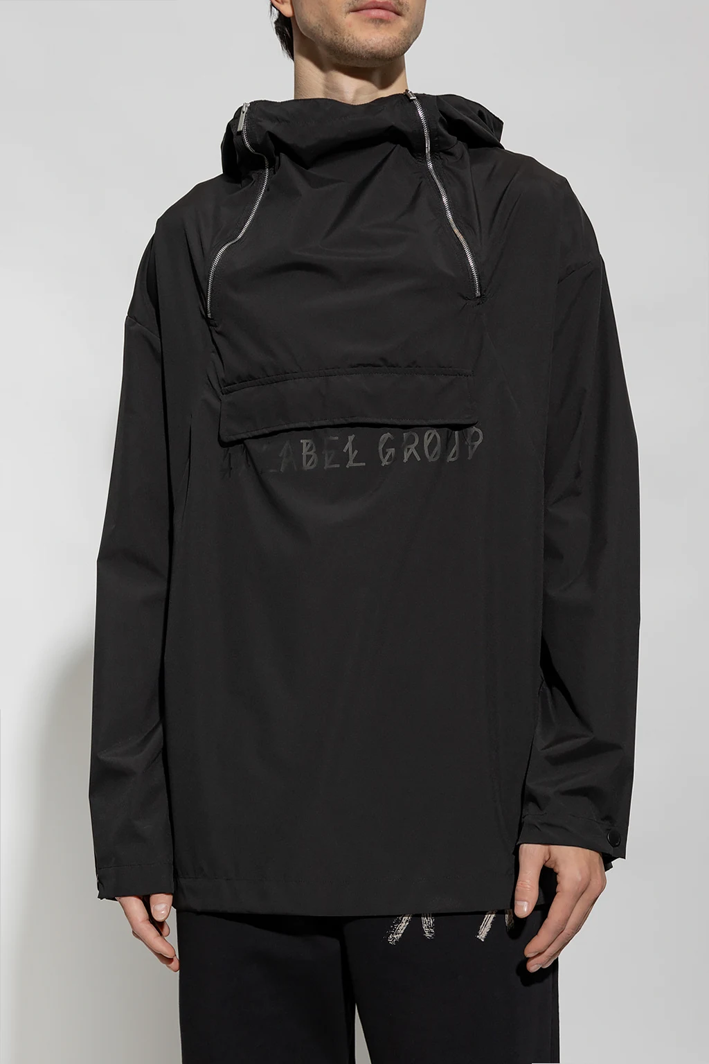 Czarna kurtka z kapturem 44 Label Group. Pod szyją wszyte zamki. Z przodu kieszeń z patką zapinaną na rzep i nadrukowane logo. Długie rękawy zakończone zapięciem na zatrzaski.