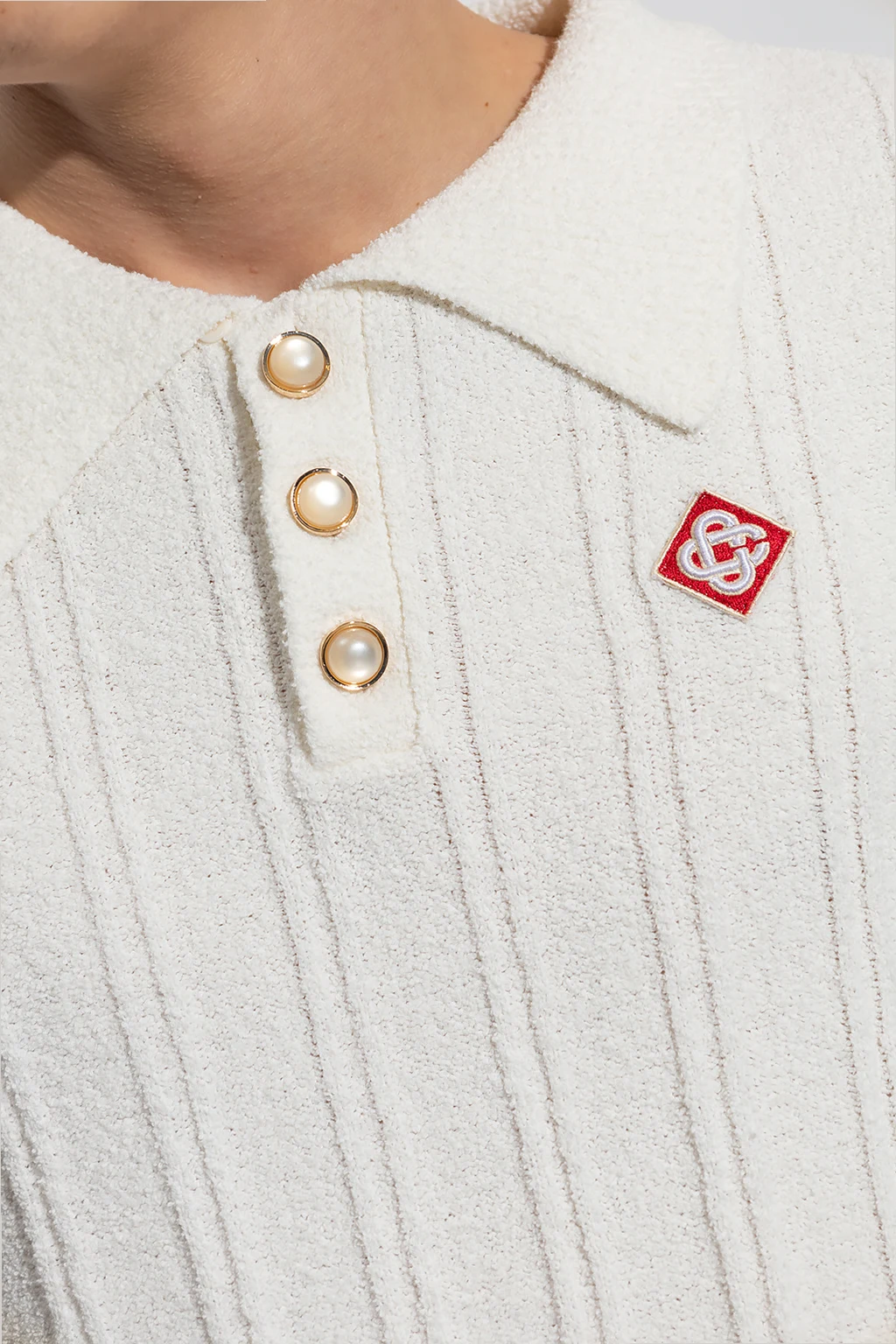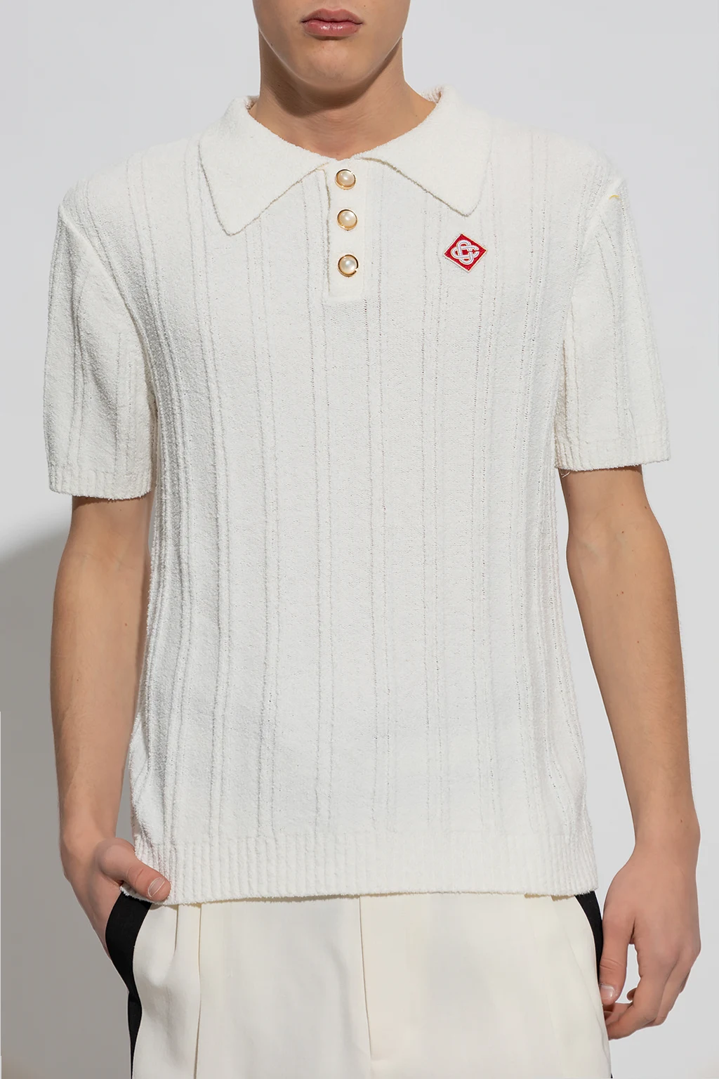 Kremowe polo Casablanca. Wykonane z materiału o specjalnej fakturze. U góry zapinane na dekoracyjne guziki. Naszywka z logo.
