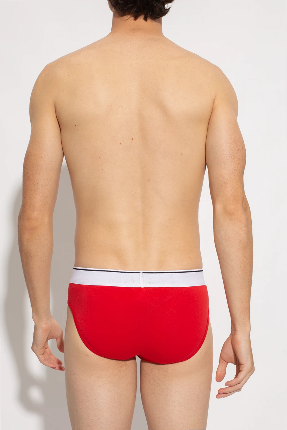Czerwone slipy, model ‘UMBR-ANDRE’ Diesel. Wykonane z bawełny. W pasie wszyta guma z czarno-czerwonym logo.