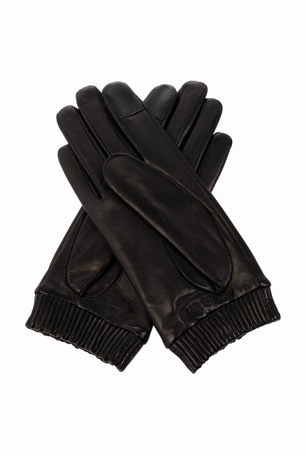 Czarne rękawiczki AllSaints. Wykonane ze skóry. Ozdobione wytłoczonym logo. Wykończone ściągaczem.