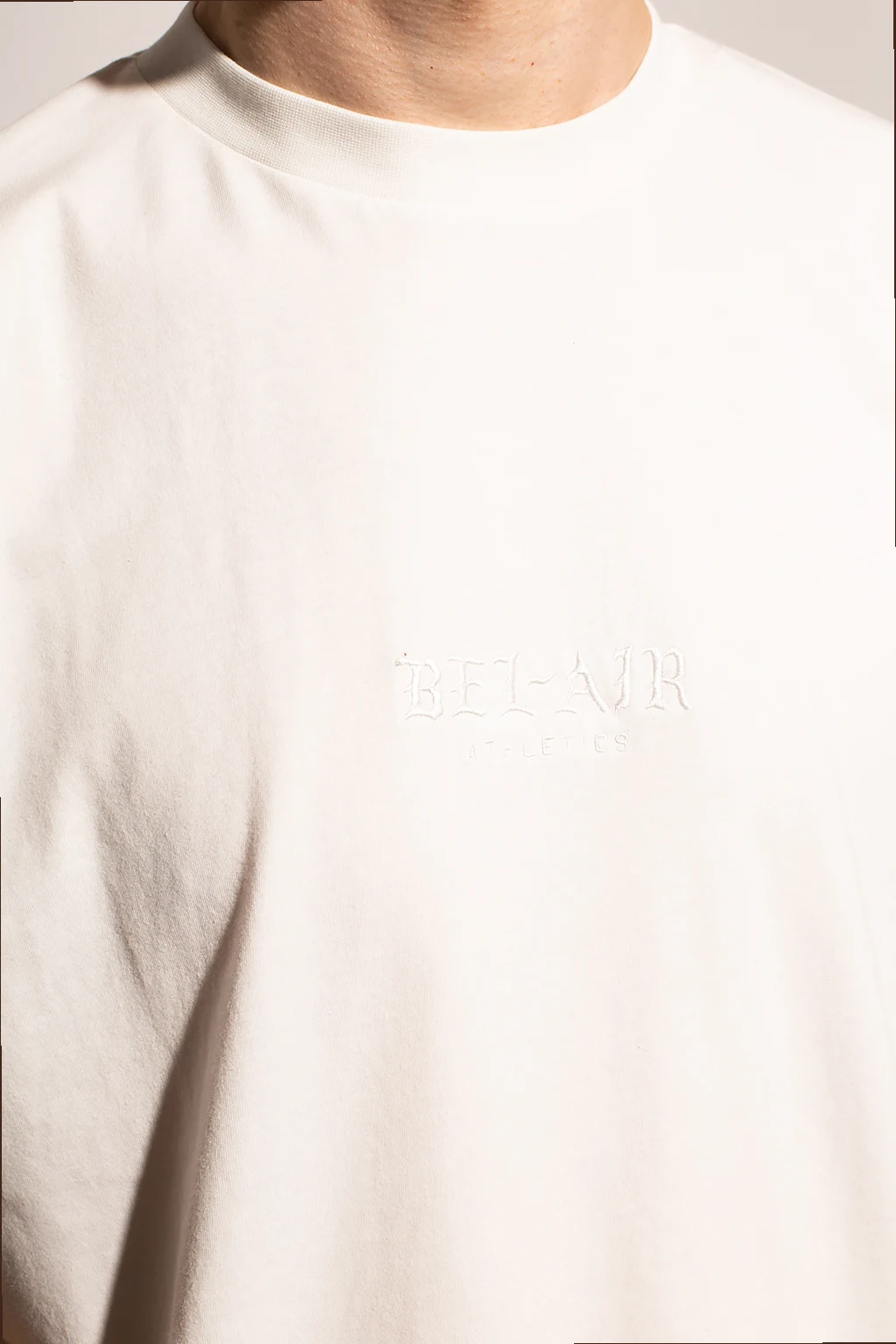 Biały, bawełniany t-shirt Bel-Air Athletics. Ozdobiony wyszytym logo. Okrągły dekolt.