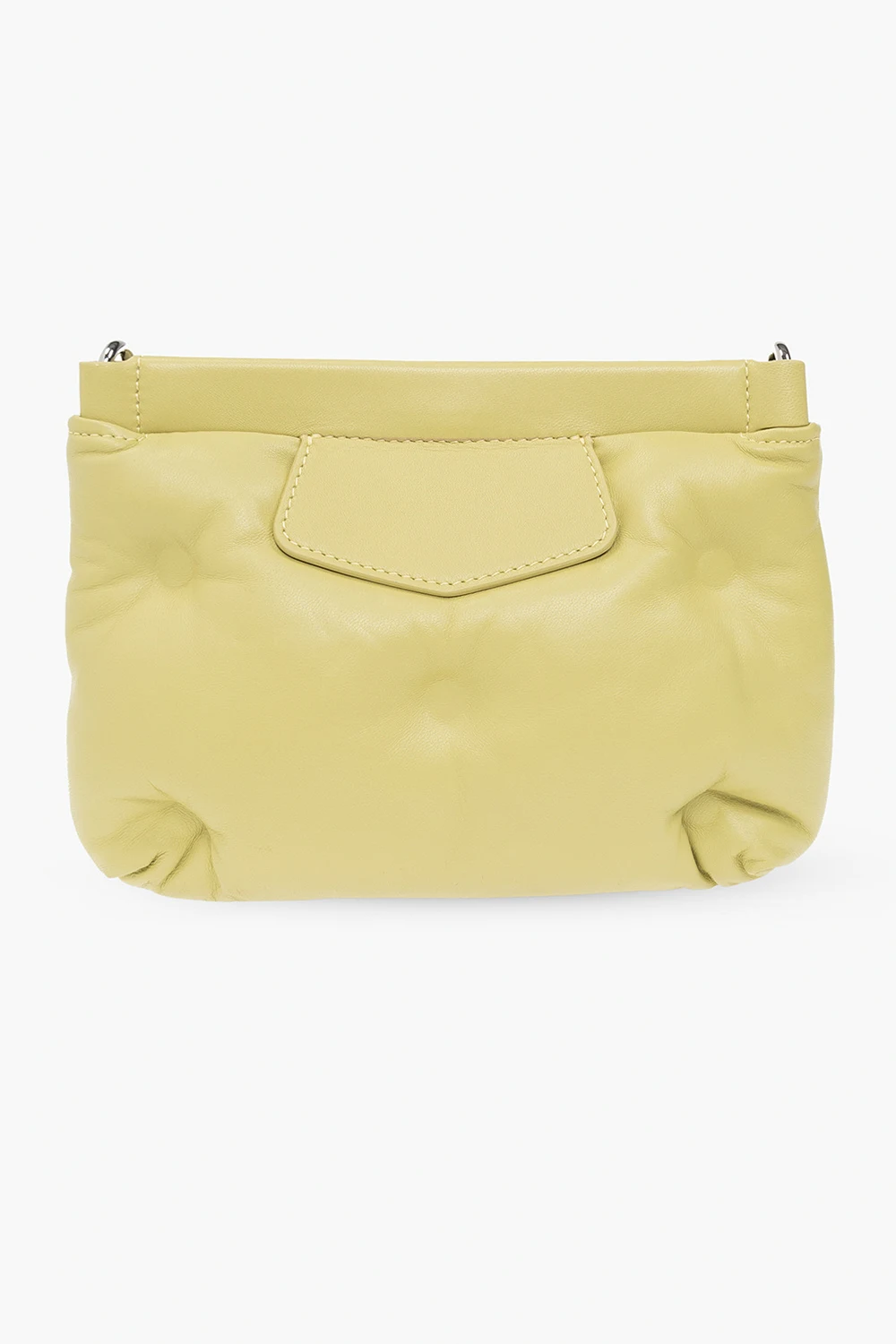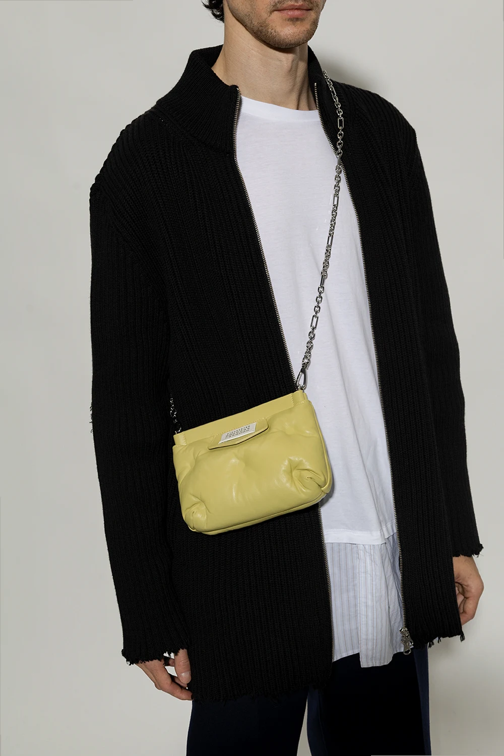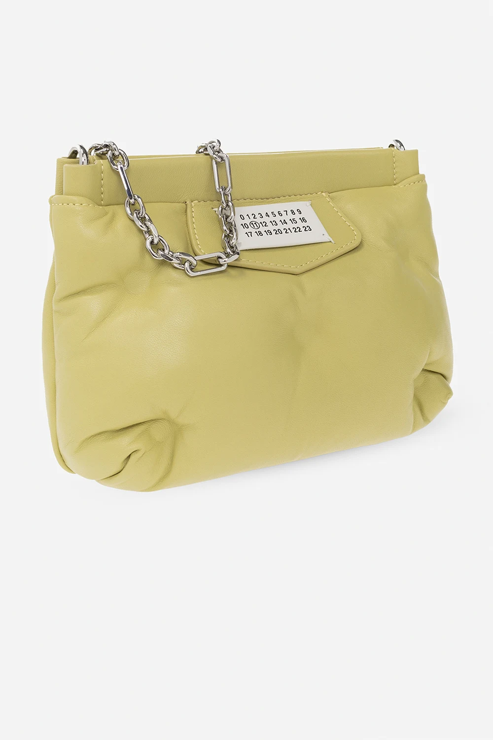 Jasnozielona torba na ramię, ‘Red Carpet Glam Slam Mini’ Maison Margiela. Zamykana na magnetyczne zapięcie. Z przodu biała naszywka z logo. Odpinany łańcuch na ramię. Wewnątrz komora z wsuwaną kieszenią. Metalowe elementy w kolorze srebrnym.