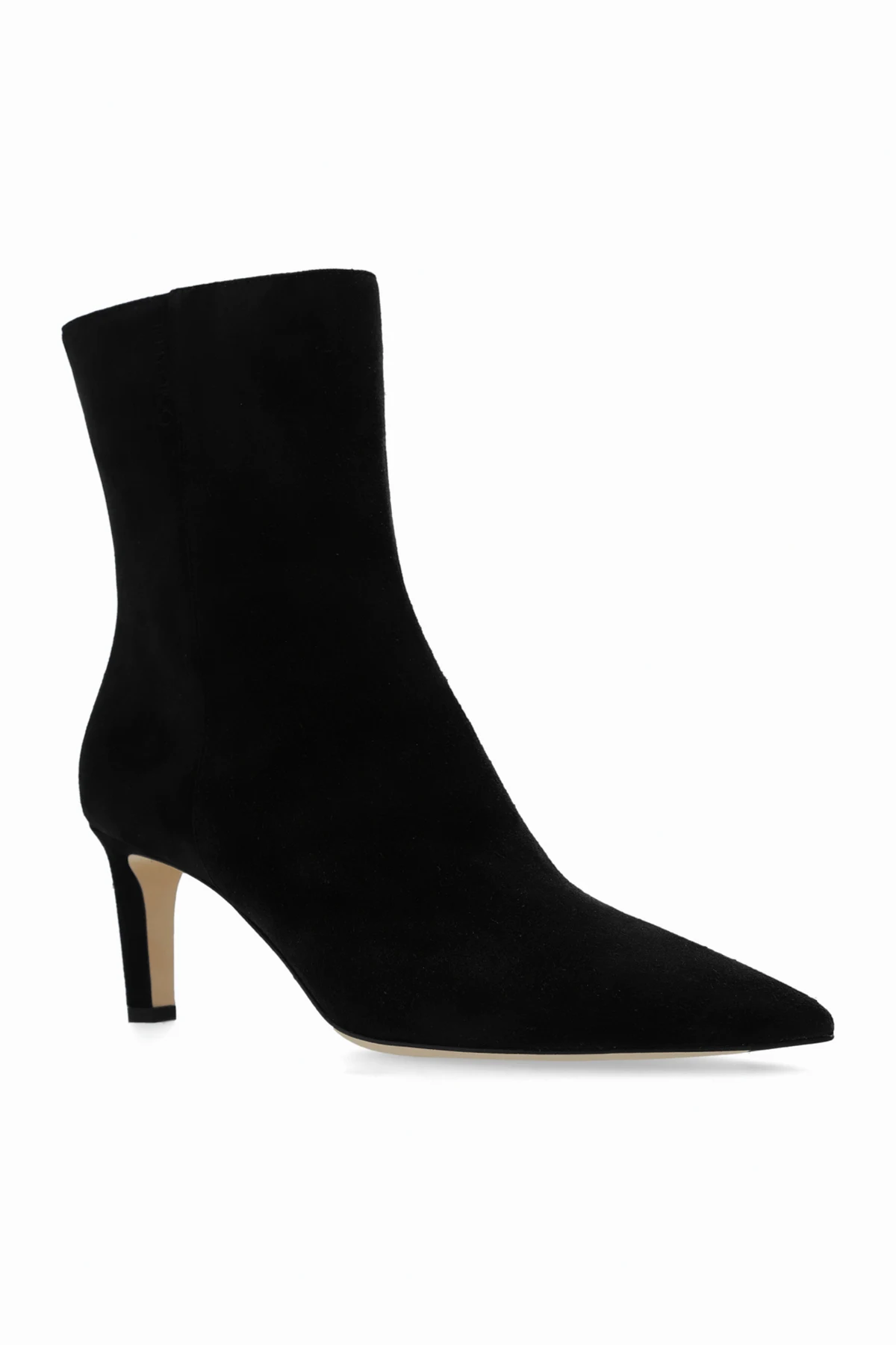 Wykonane z najwyższej jakości czarnego zamszu, botki Alizze wyróżniają się nie tylko wyglądem, ale również komfortem noszenia dzięki skórzanemu wnętrzu. Złoty suwak z boku nie tylko ułatwia zakładanie i zdejmowanie, ale także dodaje subtelnego blasku.