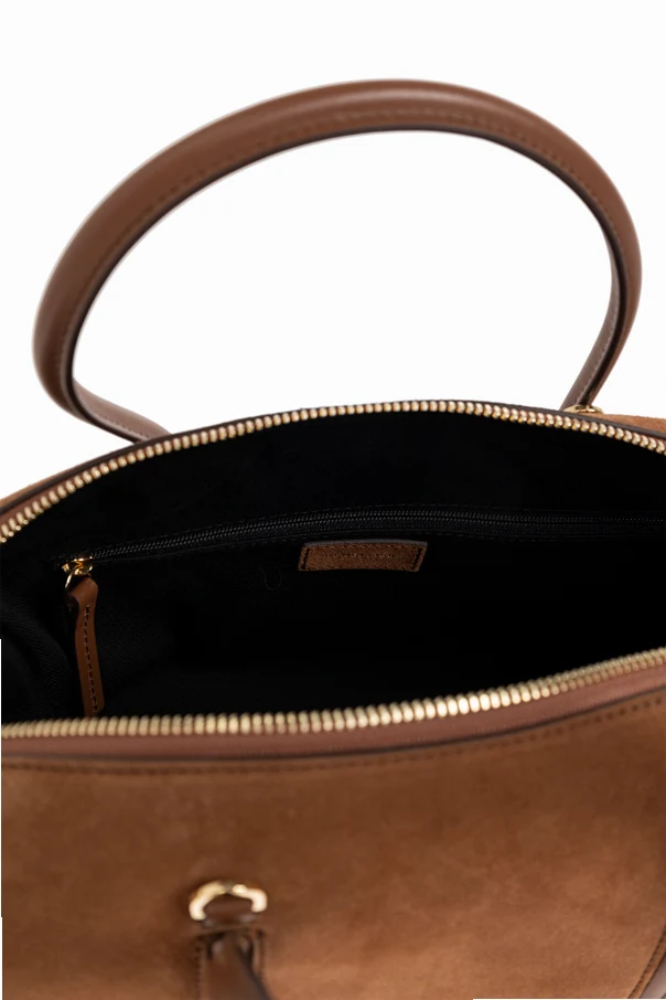 Torba do ręki Midi Stockholm to kwintesencja wykwintnego stylu, skierowana do koneserek ponadczasowej elegancji. Jej wysublimowany fason typu "bowler bag" urzeka zaokrąglonymi liniami oraz szerokim, stabilnym dnem. Warstwa zewnętrzna, wykonana z cenionego brązowego zamszu , harmonijnie współgra z gładką skórą licową uchwytów i paska w tym samym, głębokim kolorze.