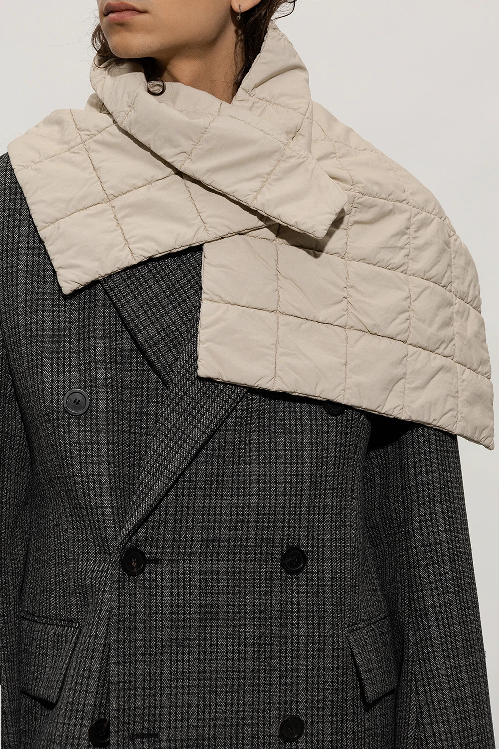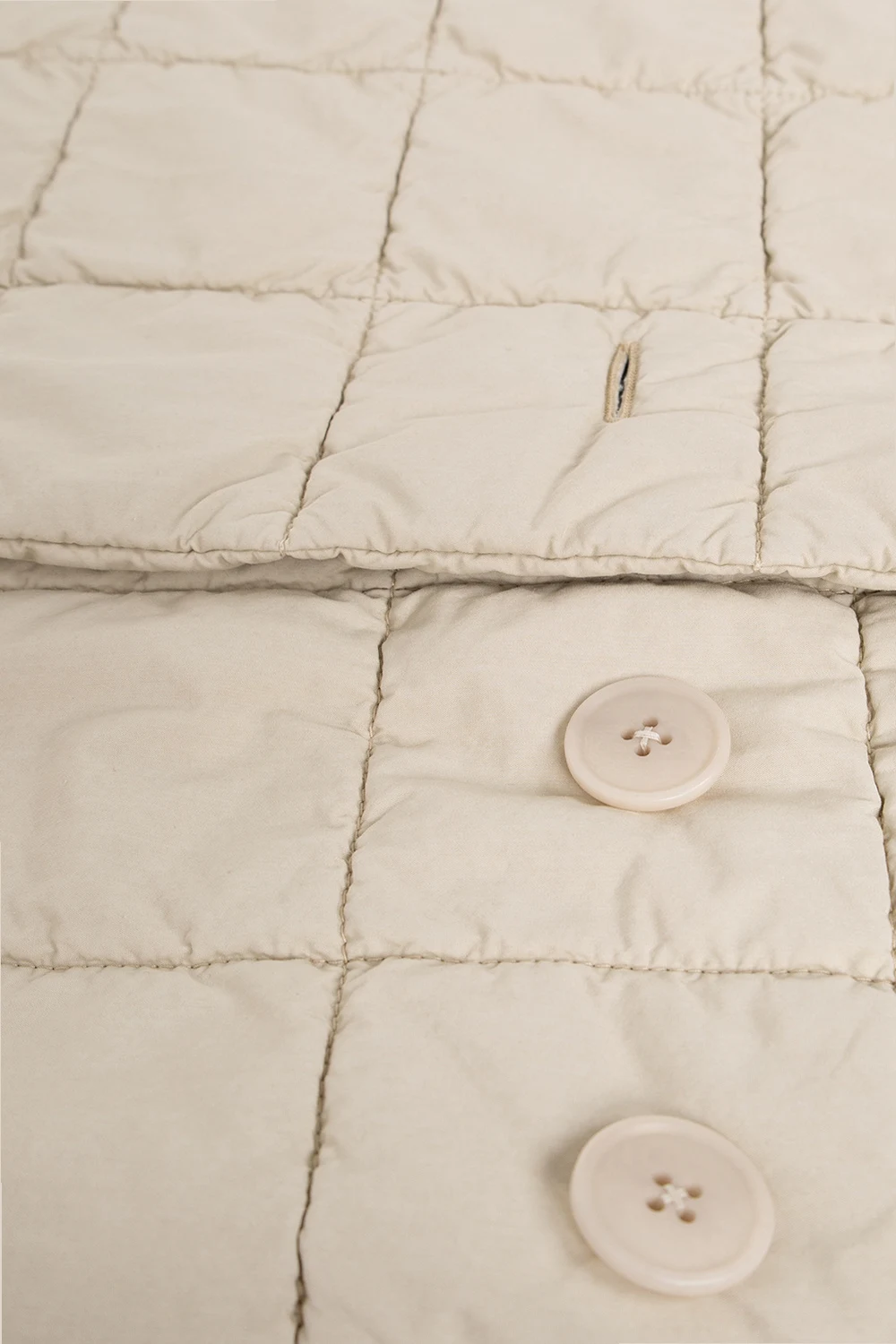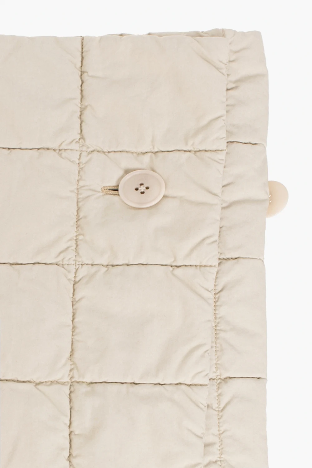 Kremowy, pikowany szal Lemaire. Wykonany z mieszanki bawełny. Zapinany na guziki.
