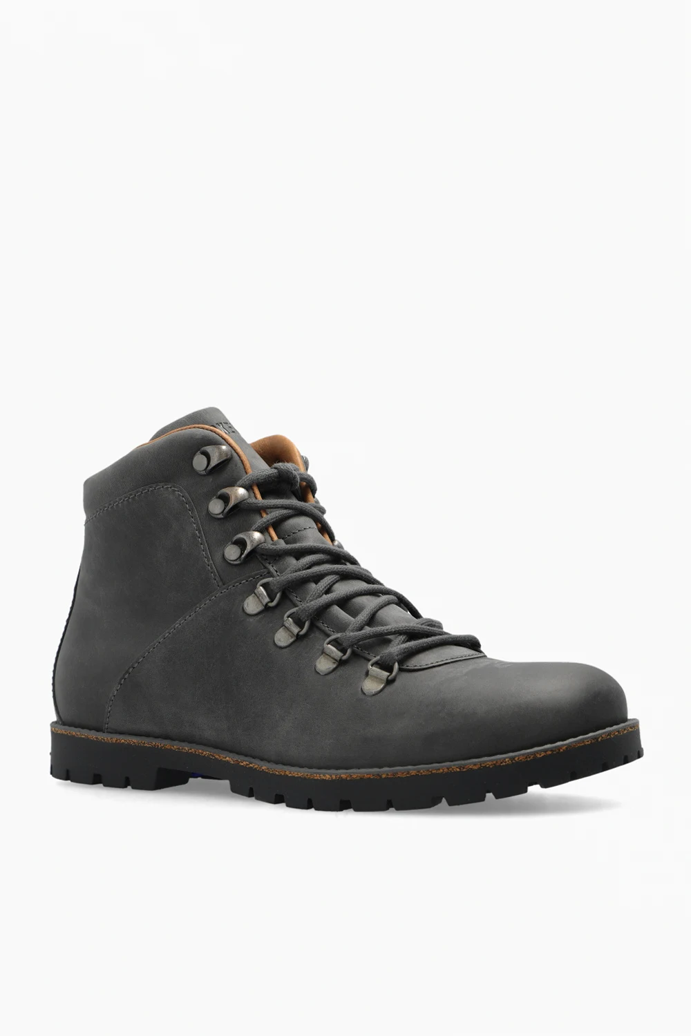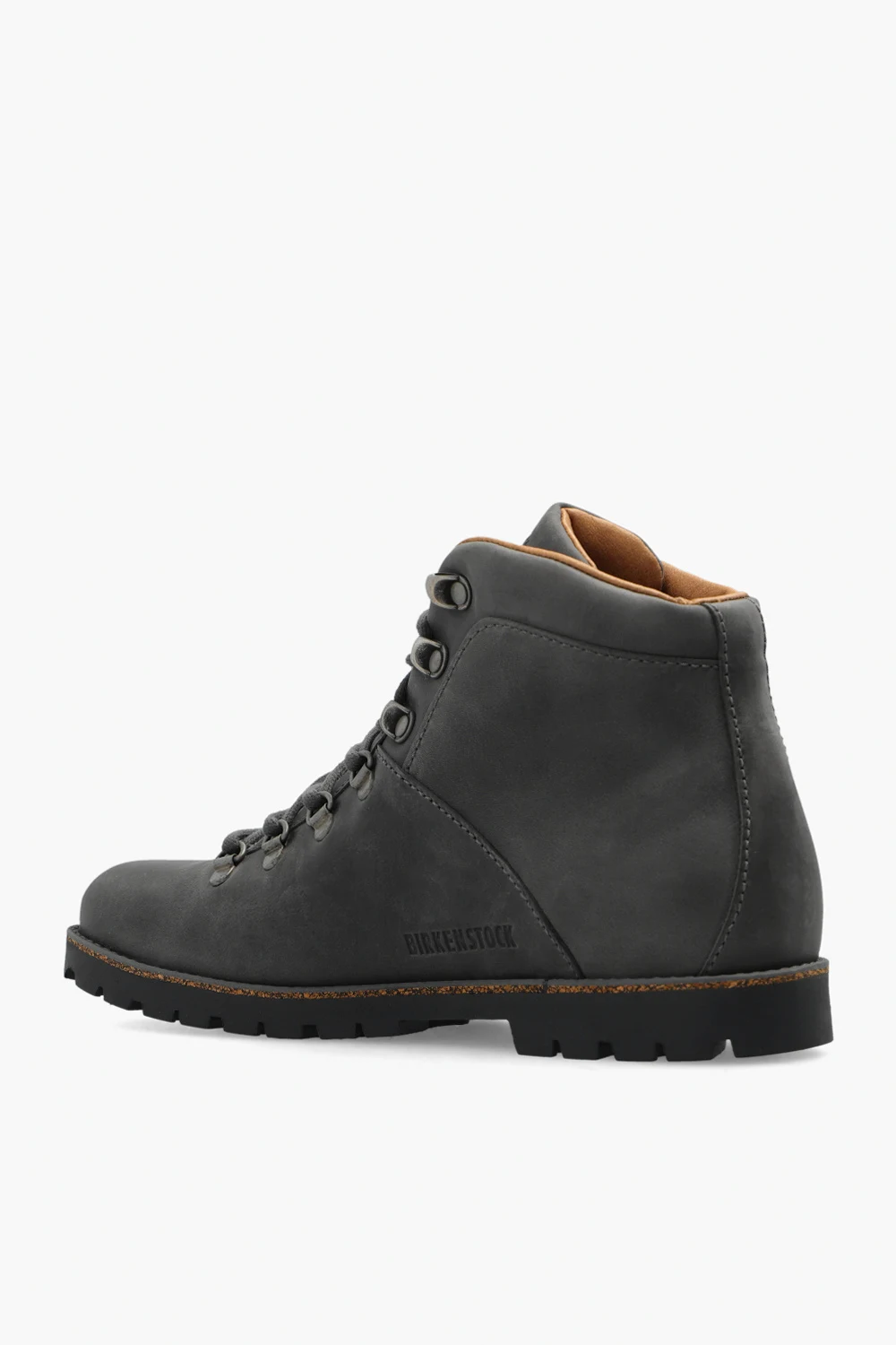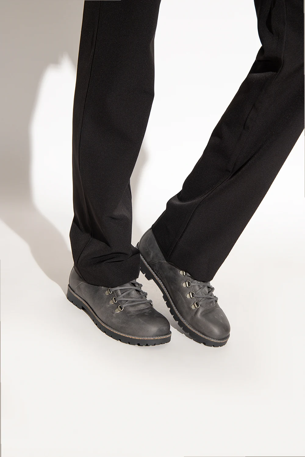 Ciemnoszare, sznurowane buty, model ‘Jackson’ Birkenstock. Cholewka o zwężanej szerokości wykonana z hydrofobowej, olejowanej skóry welurowej. Ozdobione wytłoczonym logo. Wyjmowana, anatomicznie ukształtowana wkładka korkowo-lateksowa. Ciemnoszara, gumowa podeszwa. Dołączone wymienne sznurowadła.