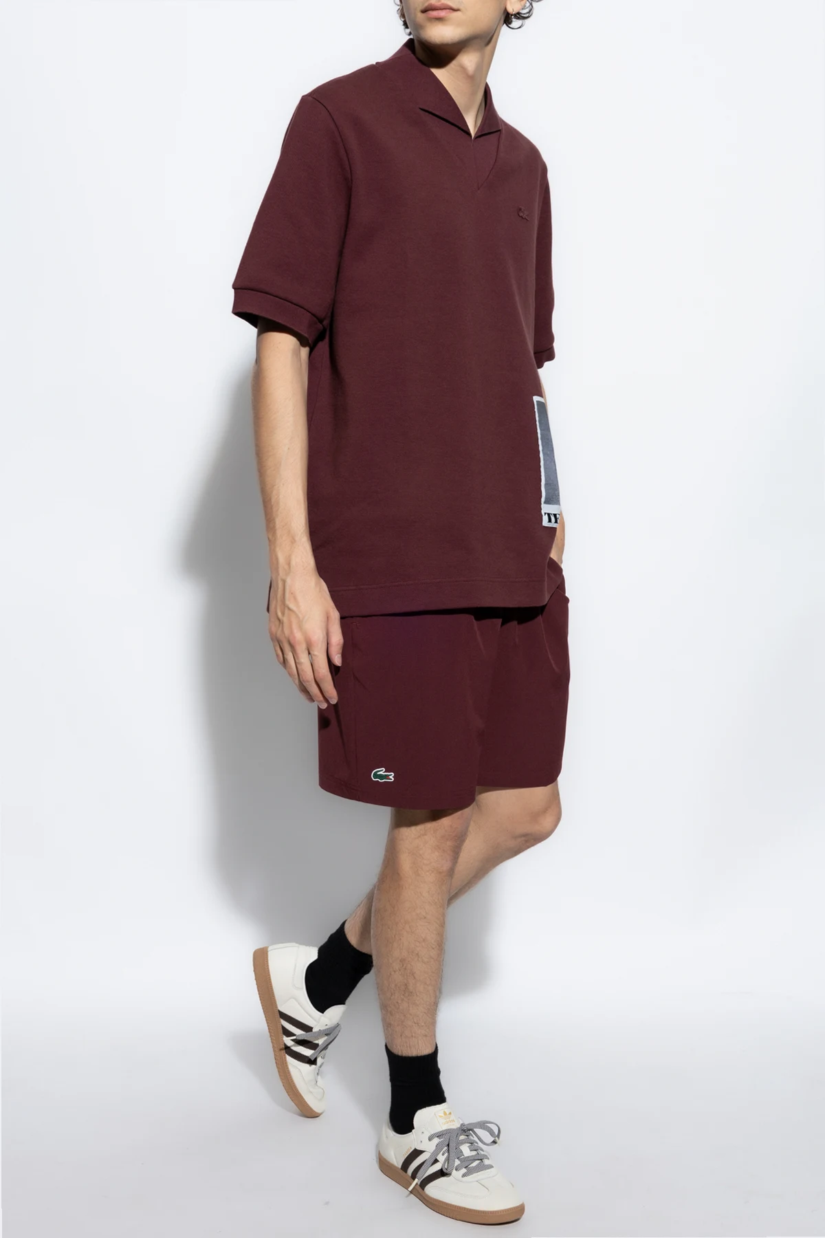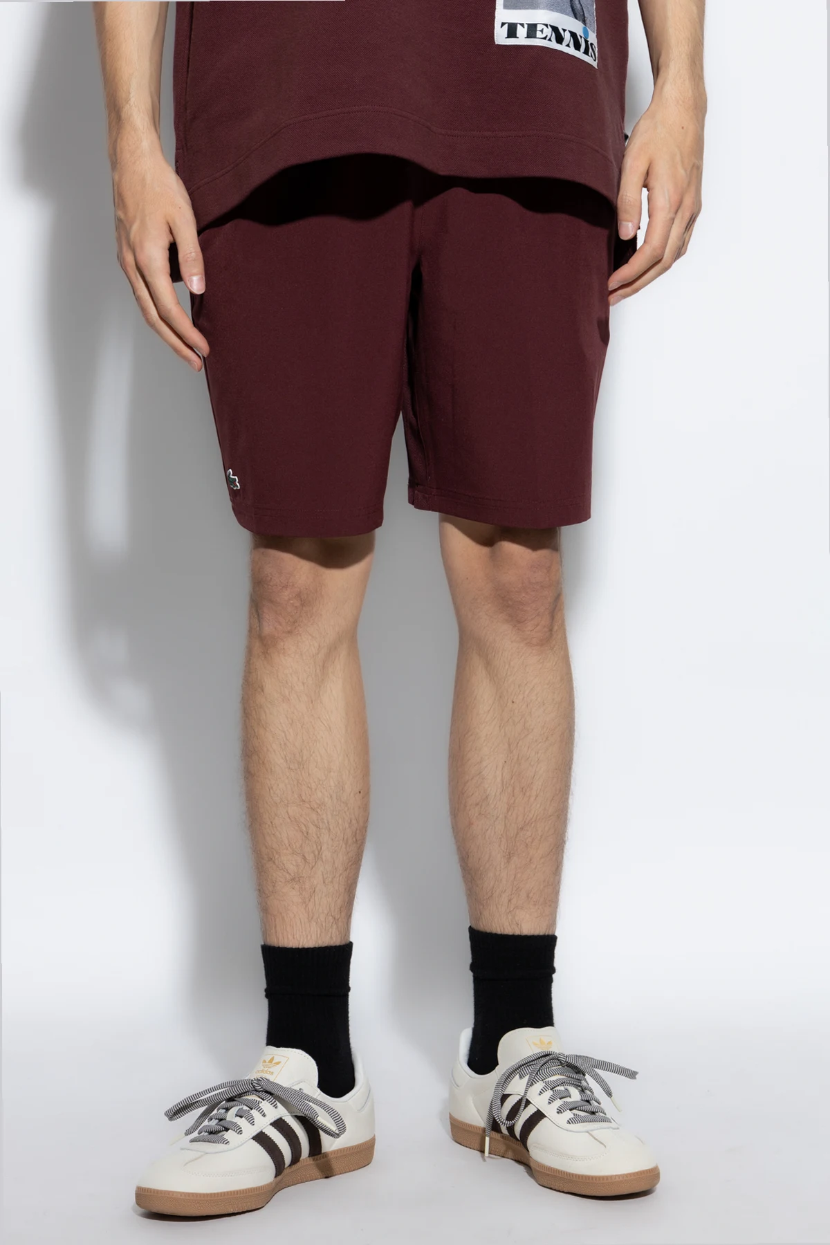 Na lewym nogawce znajduje się charakterystyczne logo krokodyla , symbolizujące dziedzictwo marki Lacoste, założonej przez tenisa supergwiazdę René Lacoste. Marka, znana z kultowego logo, od 1933 roku kreuje francuskie dziedzictwo sportowe, tworząc odzież, która jest zarówno funkcjonalna, jak i stylowa.