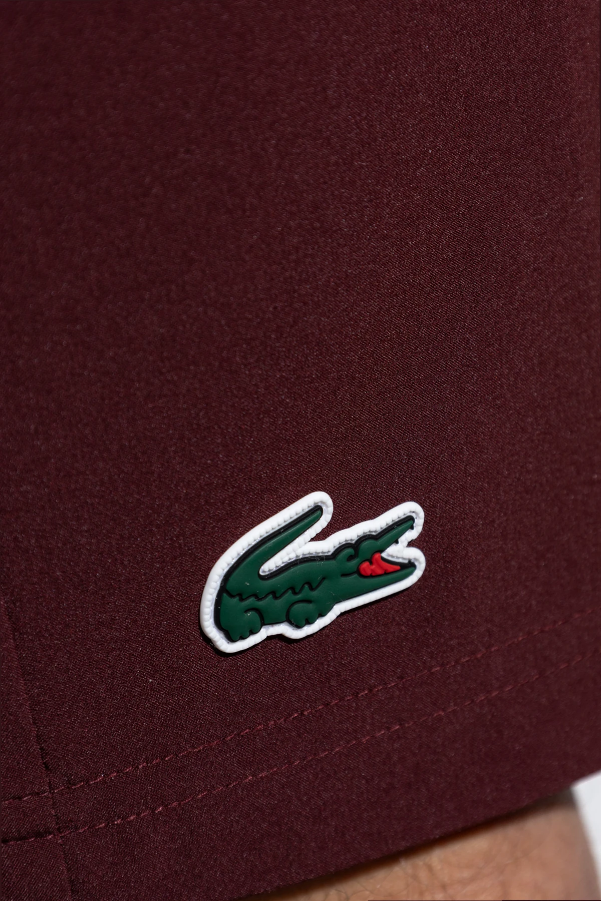Przedstawiamy bordowe szorty z logo z ekskluzywnej kolekcji Lacoste, które łączą w sobie ponadczasową elegancję z funkcjonalnością. Te szorty o klasycznym kroju, sięgające przed kolano, wykonane są z gładkiego materiału, którego lekki połysk świadczy o ich wysokiej jakości. Bordowy kolor nadaje im wyjątkowego charakteru, a elastyczna gumka w pasie zapewnia niezrównany komfort noszenia.