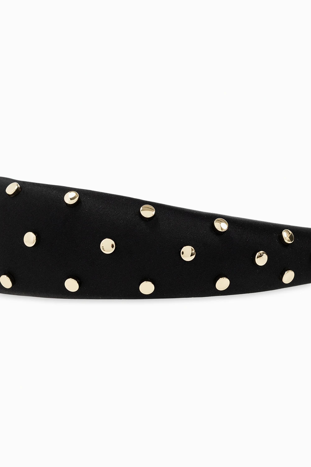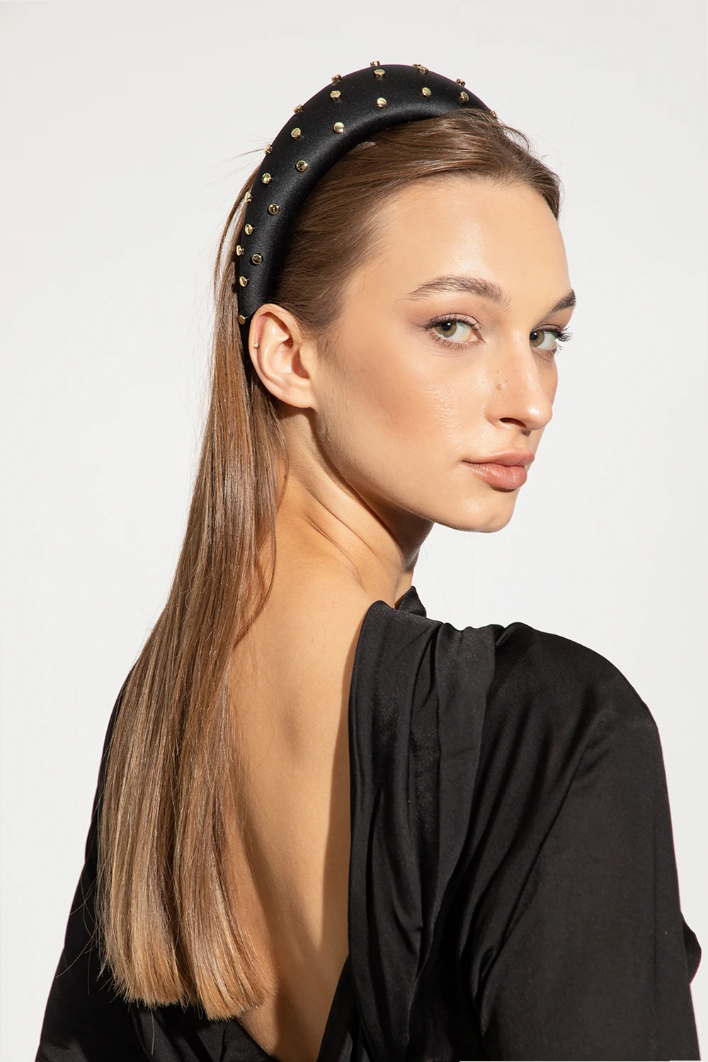Czarna opaska na głowę Red Valentino. Ozdobiona ćwiekami w kolorze złotym.