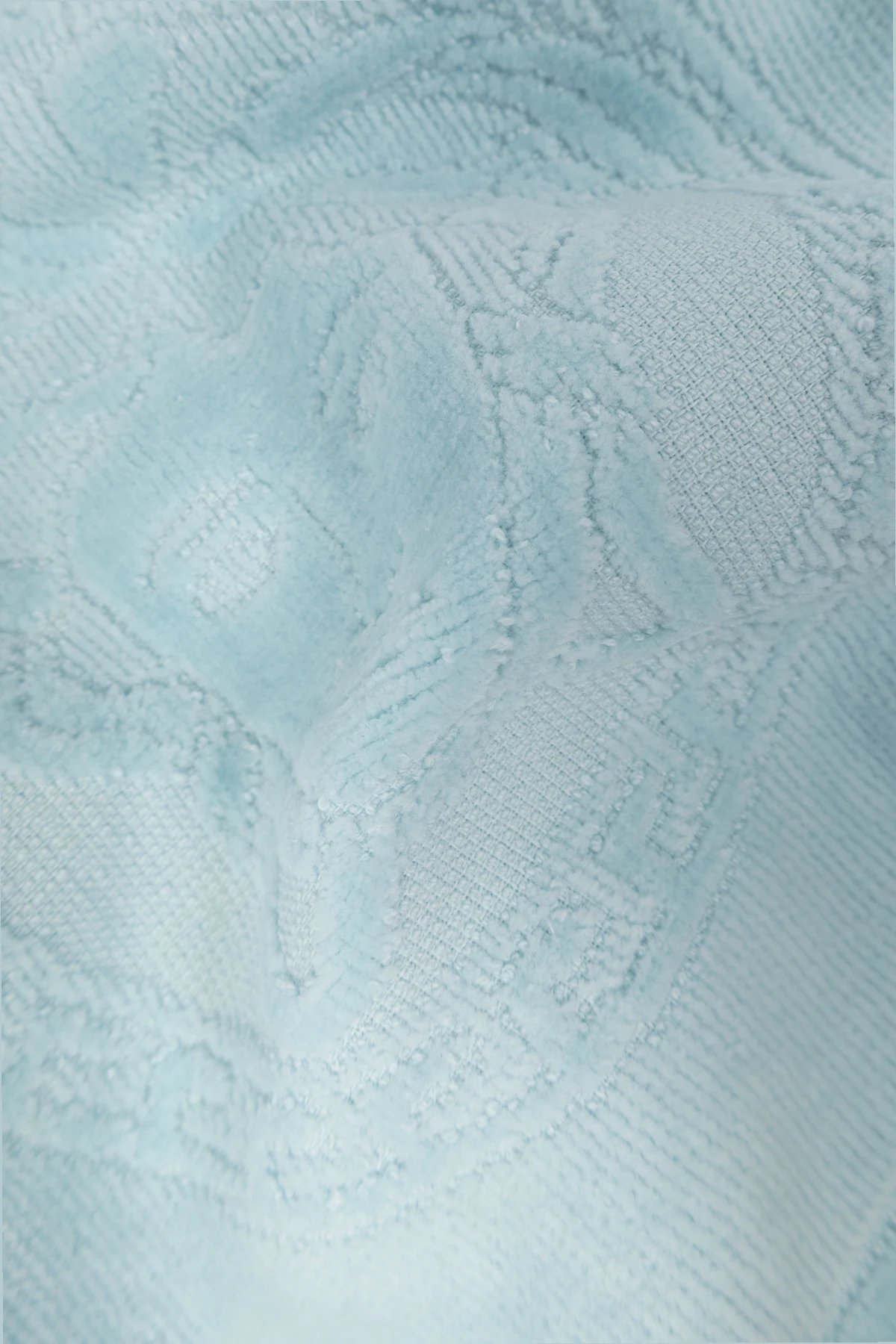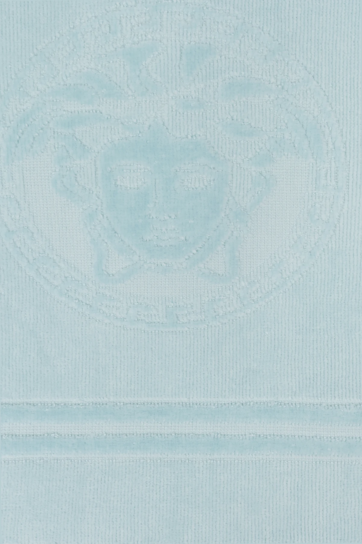 Przedstawiamy Państwu bawełniany ręcznik do rąk z ekskluzywnej kolekcji Versace Home , który jest ucieleśnieniem dyskretnego luksusu. Wykonany z najwyższej jakości bawełny, ten jasnoniebieski ręcznik jest nie tylko miękki w dotyku, ale również wyjątkowo chłonny, zapewniając użytkownikowi niezrównany komfort użytkowania.