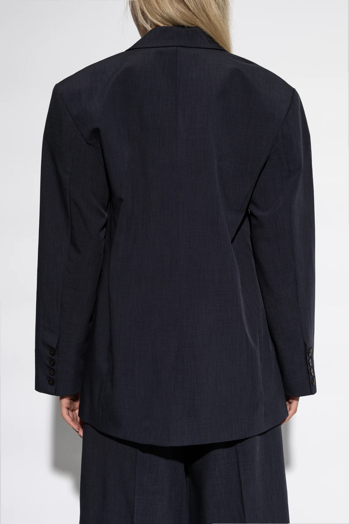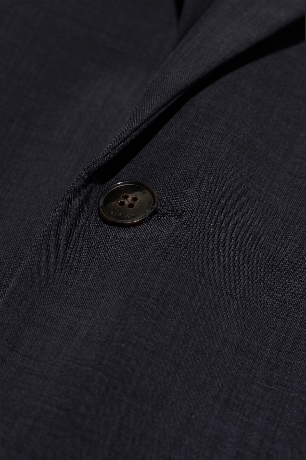 Wnętrze marynarki jest starannie wykończone, co jest typowe dla luksusowych marek. Ozdobne guziki na rękawach oraz detal przy mankiecie wskazujący na markę podkreślają jej unikatowy styl.