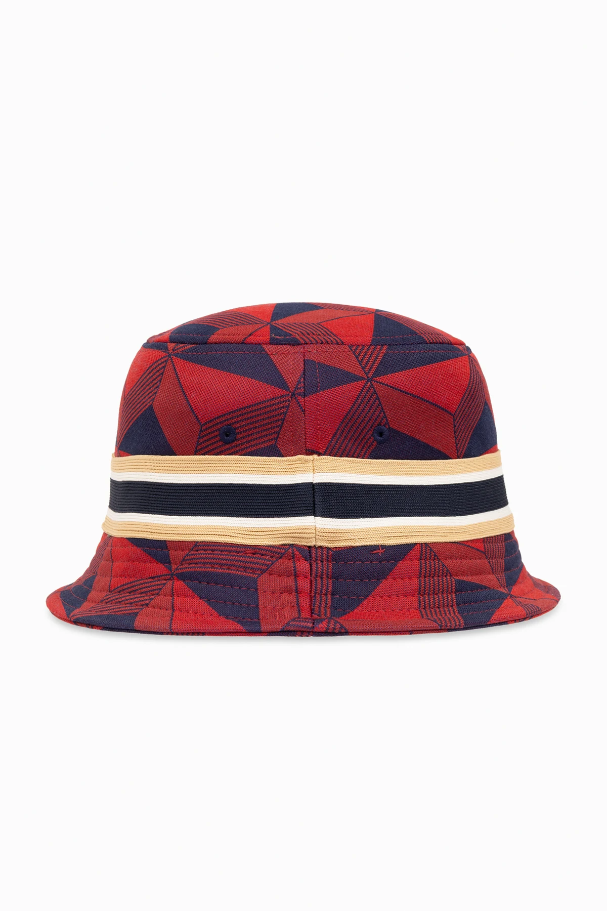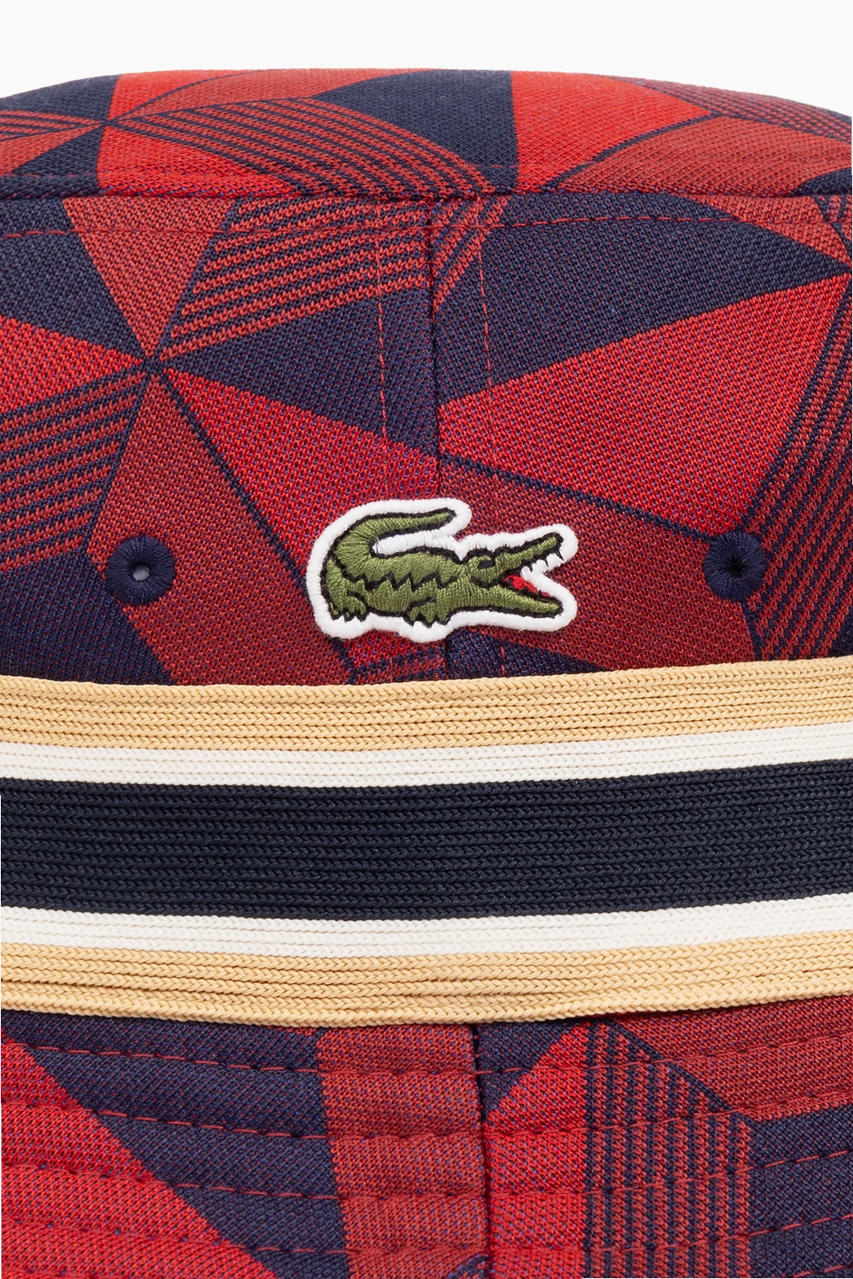 Przedstawiamy Państwu kapelusz z logo Lacoste , będący kwintesencją stylu i funkcjonalności. Jego niepowtarzalny design, łączący w sobie wielokolorowy, geometryczny wzór z dominującymi odcieniami czerwieni i niebieskiego, akcentowany czernią i beżem, nadaje mu unikatowy charakter. Całość uzupełnia kontrastujący, biały pas z czarno-czerwonym obramowaniem, dodający kapeluszowi wyrazistości oraz sportowego ducha.