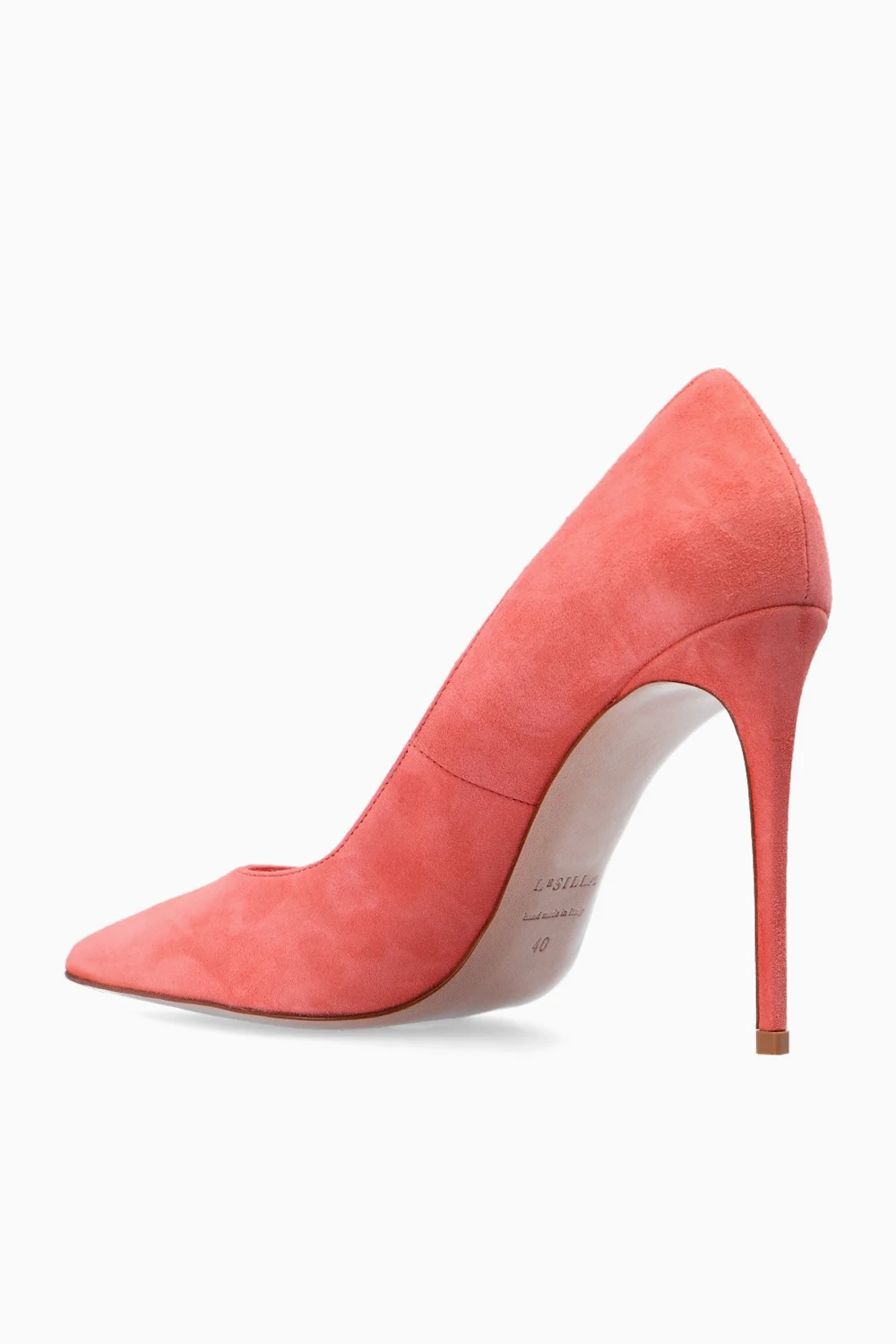 Jasnoróżowe szpilki, model ‘Deco Eva’ Le Silla. Wykonane z zamszu. Nosek w szpic. Beżowa, skórzana podeszwa z gumową, antypoślizgową wstawką.