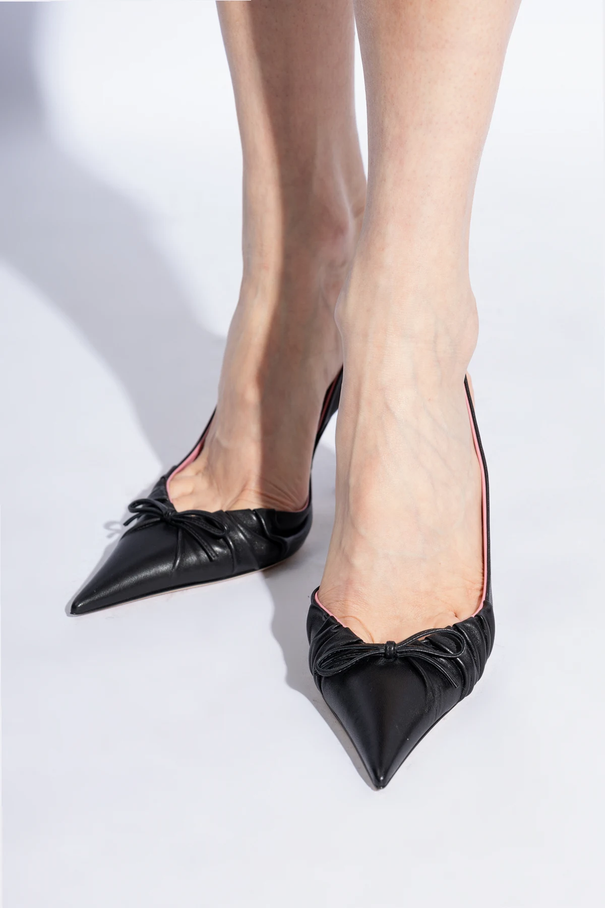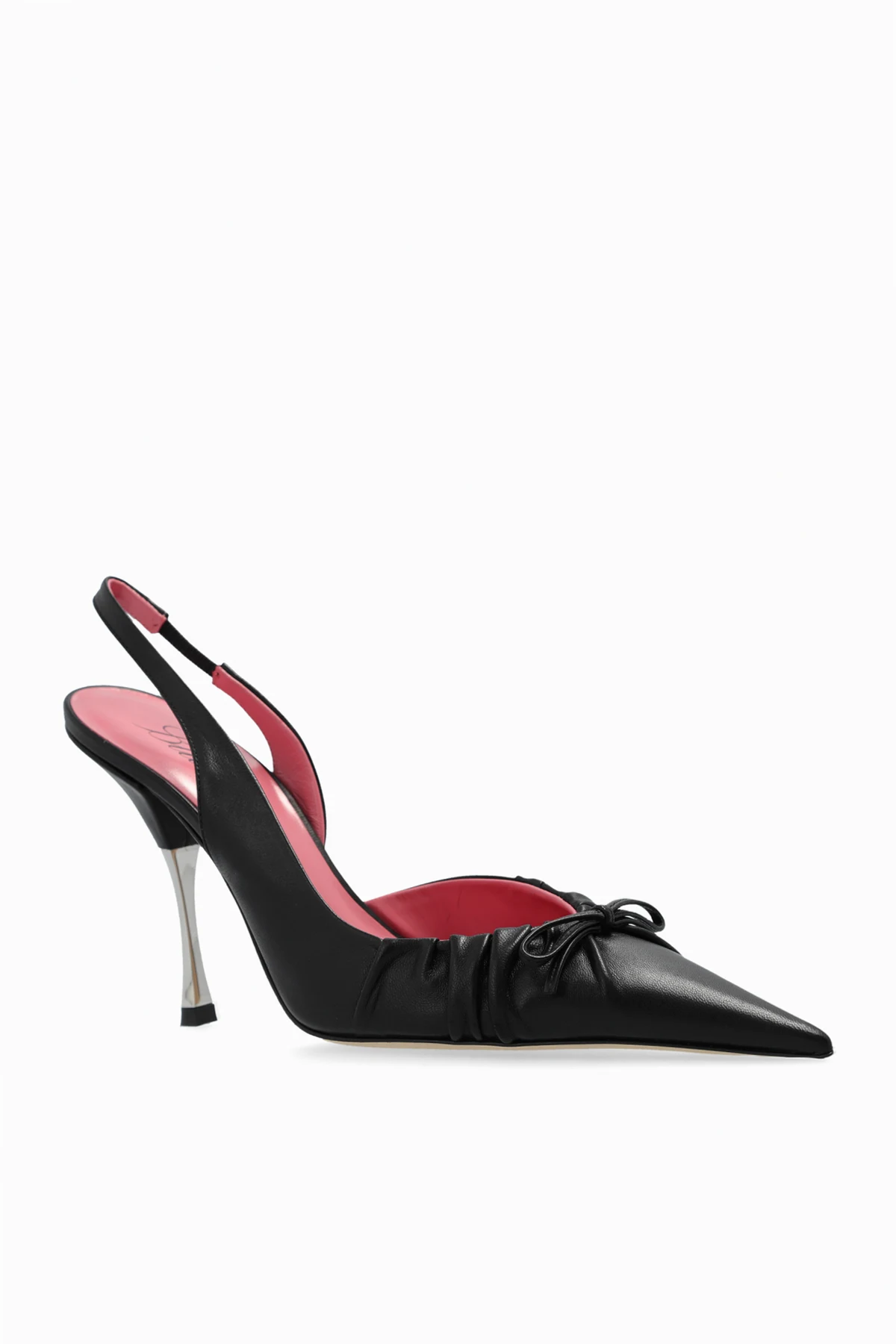 Detale podkreślające unikatowość - metalowy obcas, kokarda, marszczenia oraz kontrastowe wnętrze butów.
