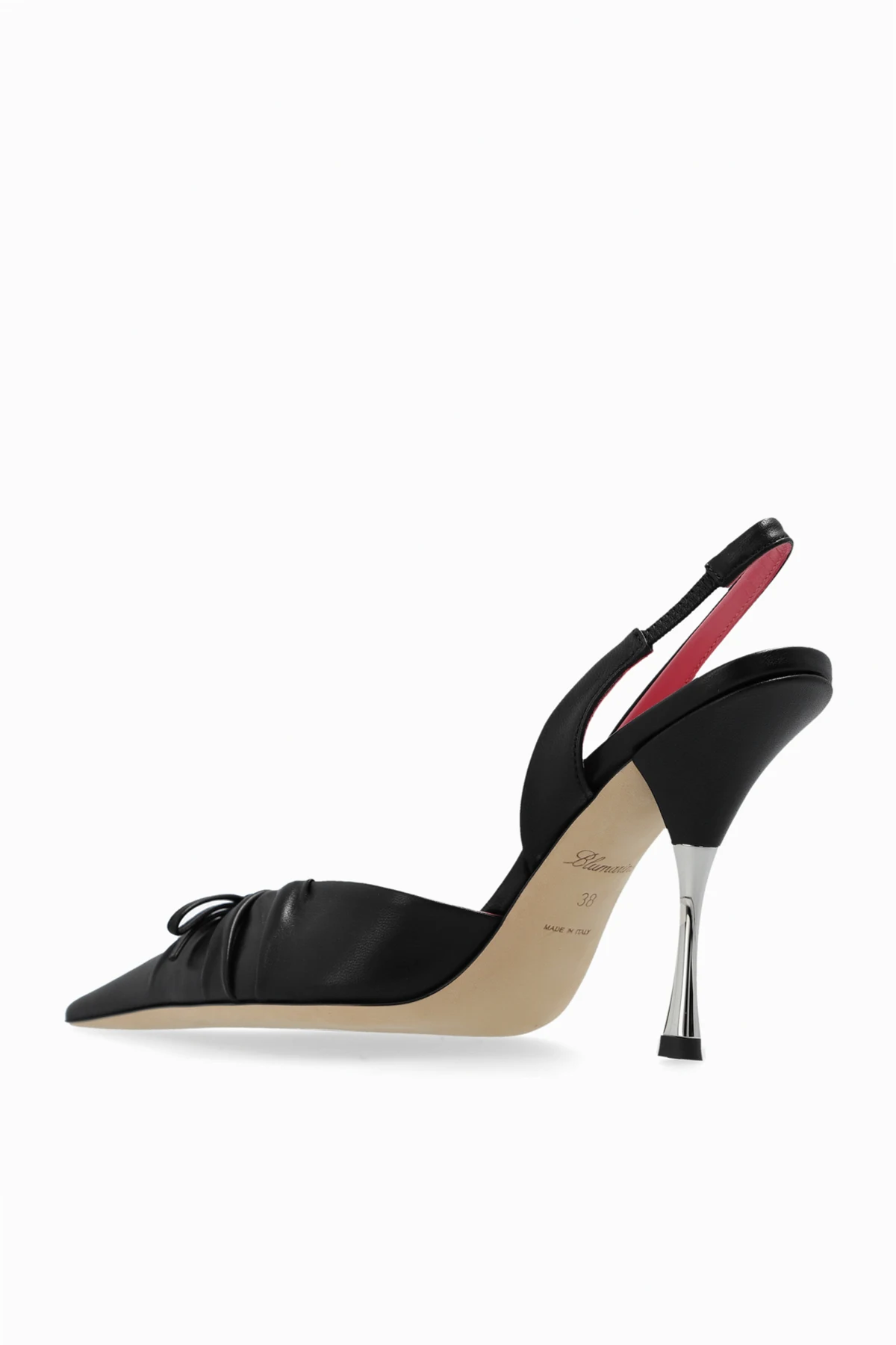 Przedstawiamy Państwu kwintesencję elegancji i wyrafinowanego stylu - buty na obcasie ‘Carla’ od Blumarine . Te zniewalające czarne obuwie, wykonane z najwyższej jakości skóry , zostało zaprojektowane z myślą o kobietach ceniących sobie ponadczasowy design oraz wygodę. Charakterystycznym elementem tych butów jest wąski, spiczasty czubek oraz elegancki, cienki i wysoki obcas, który zdaje się być wykonany z metalu - dodając butom blasku i unikatowości.