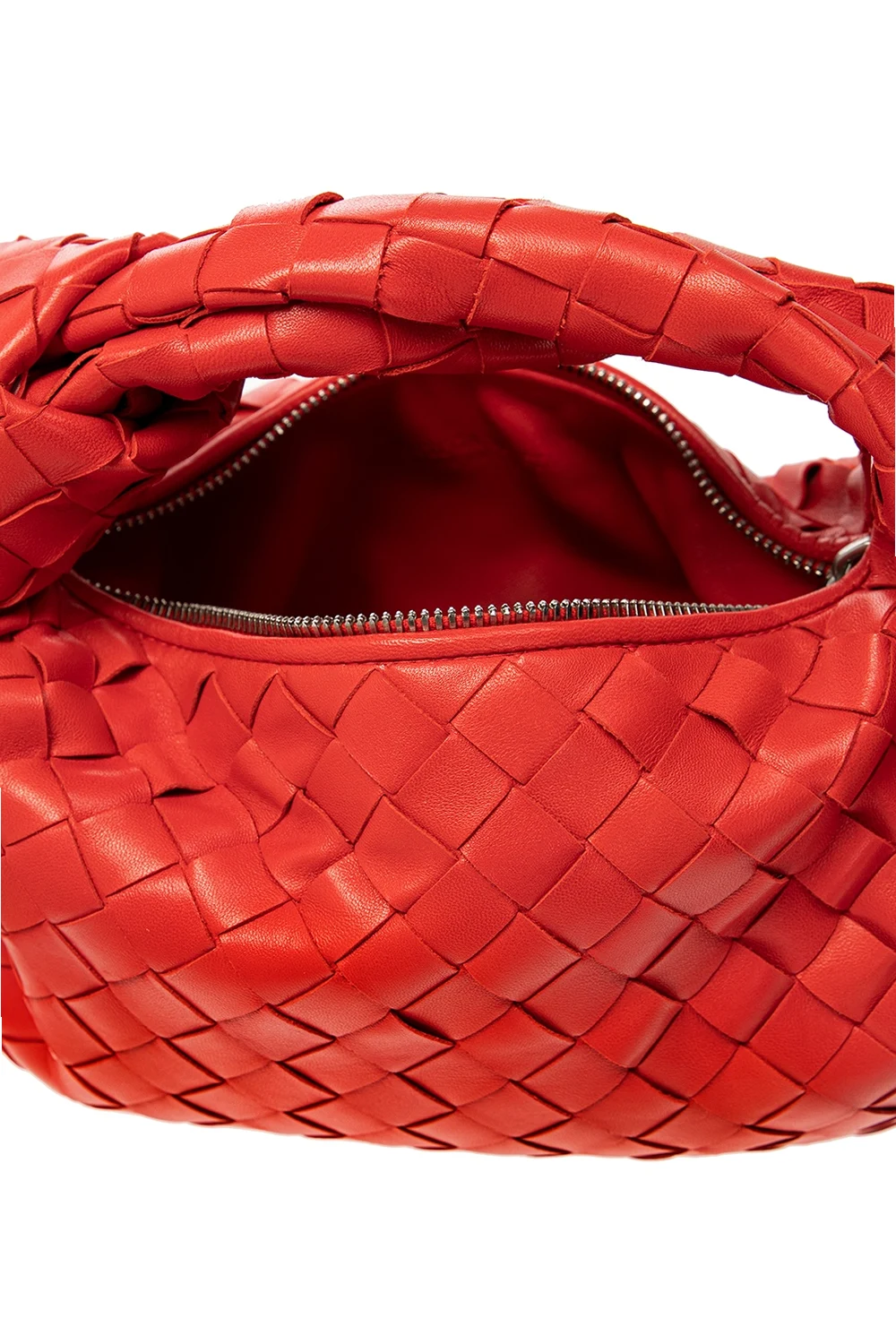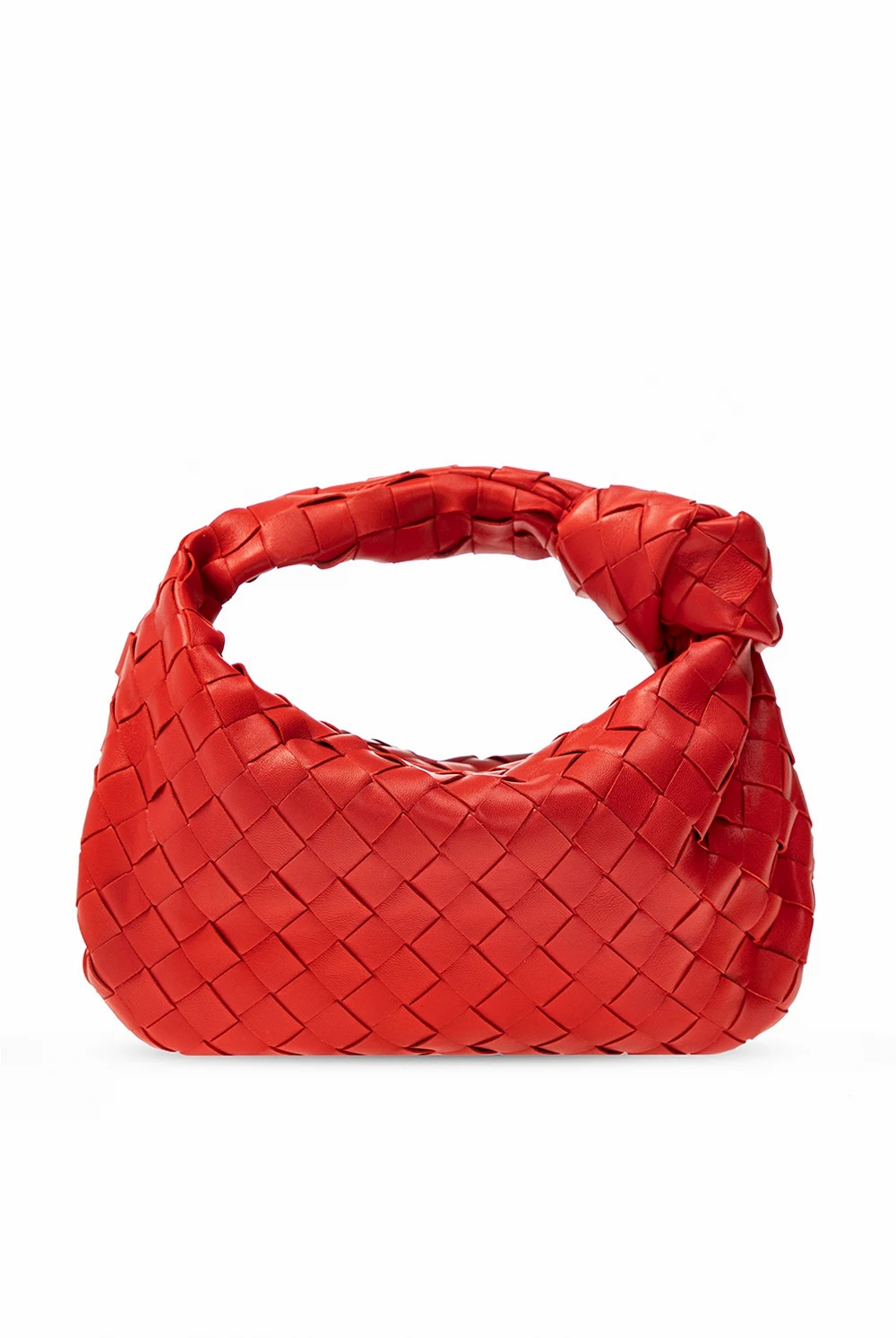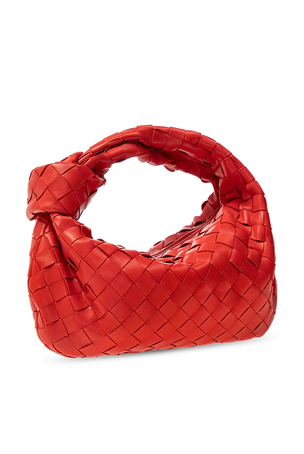 Biała torba do ręki, model 'BV Jodie' Bottega Veneta, rozmiar ‘mini’. Wykonana ze skóry cielęcej. Zamykana na zamek. Ozdobiona charakterystyczną dla marki plecionką 'Intrecciato'. Półokrągła rączka z dekoracyjnym supłem. Wewnątrz komora.