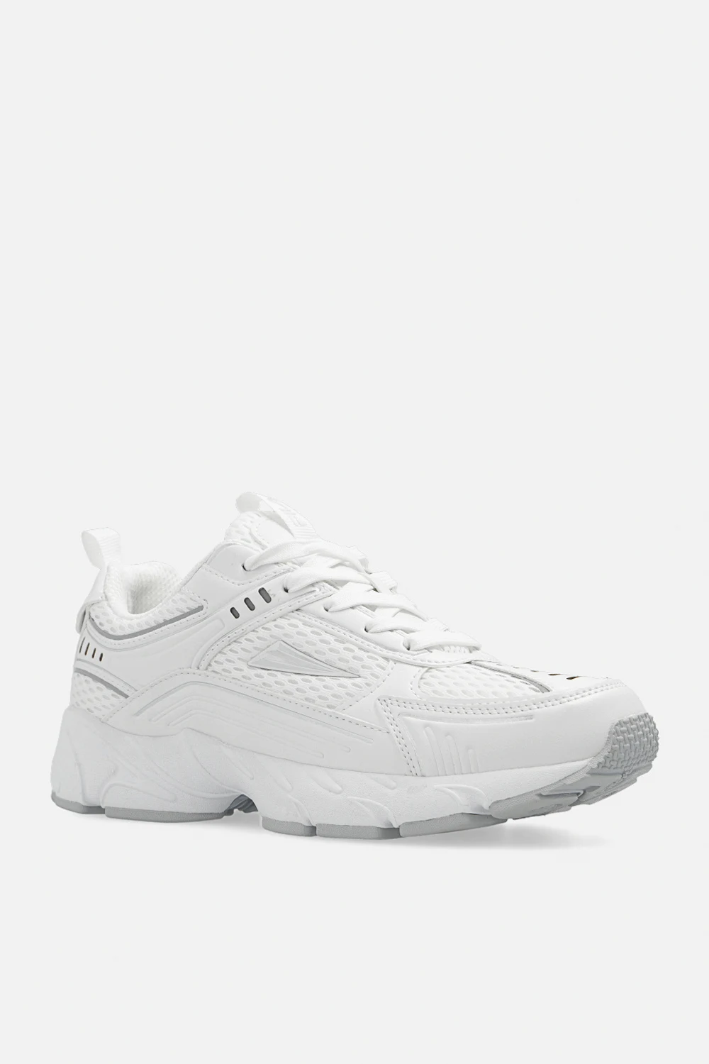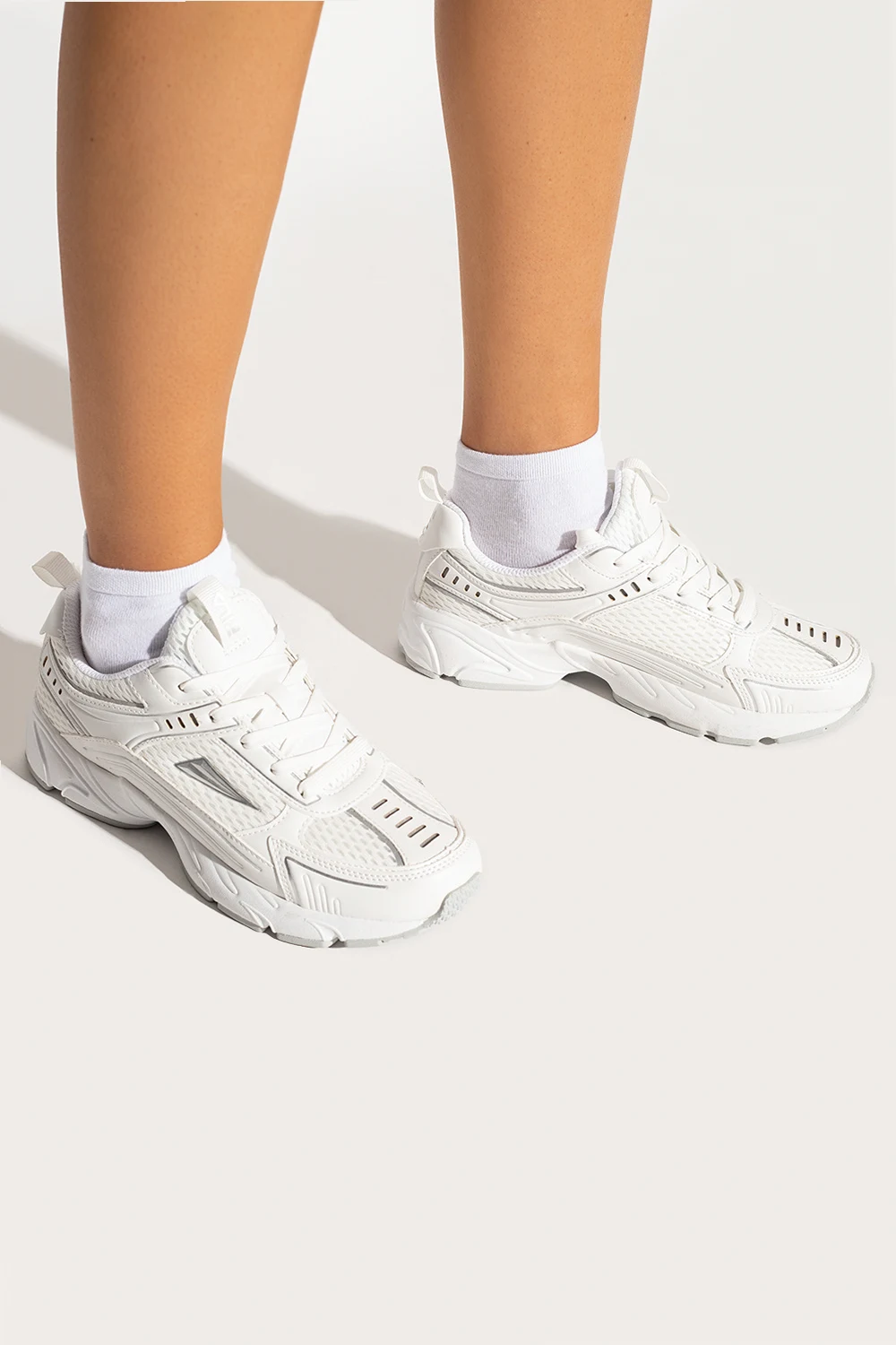Białe, sznurowane buty sportowe, model ‘2000 Stunner Low’ Fila. Wykonane z imitacji skóry i wykończone sportową siatką. Na języku oraz z tyłu logo w kolorze srebrnym. Biało-szara, gumowa podeszwa.