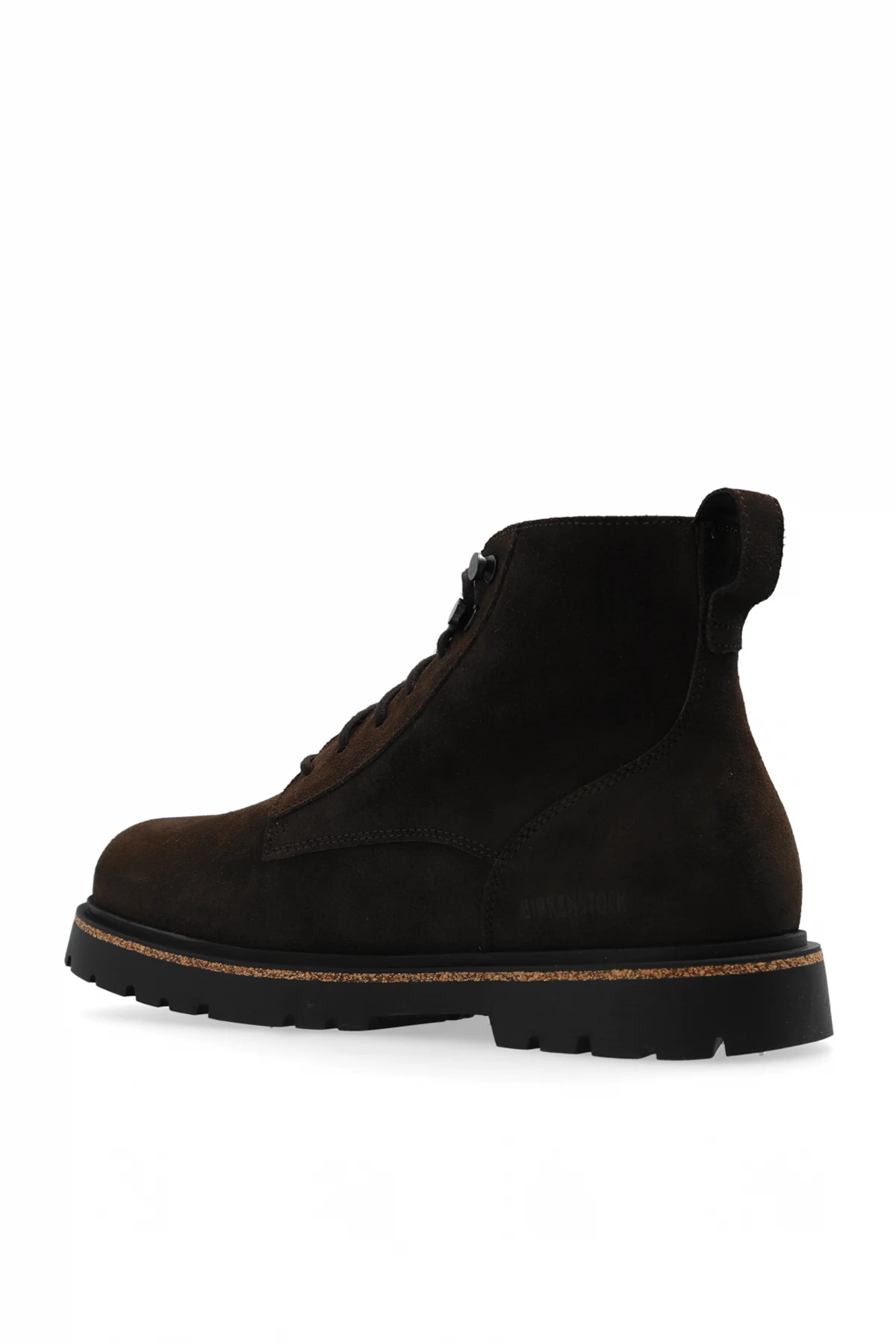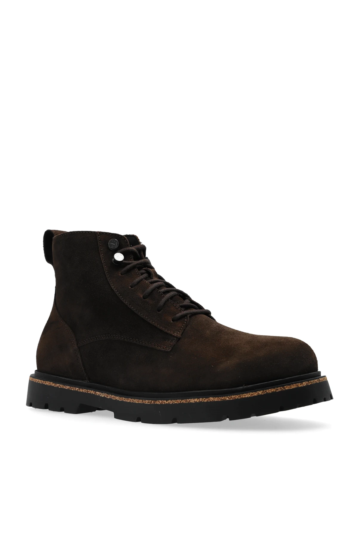Przedstawiamy Buty "Highwood Lace Mid" z ekskluzywnej kolekcji marki Birkenstock, które łączą w sobie klasykę z nowoczesnym designem. Te ciemnobrązowe, sznurowane buty wykonane z wysokiej jakości zamszu to kwintesencja elegancji i stylu.