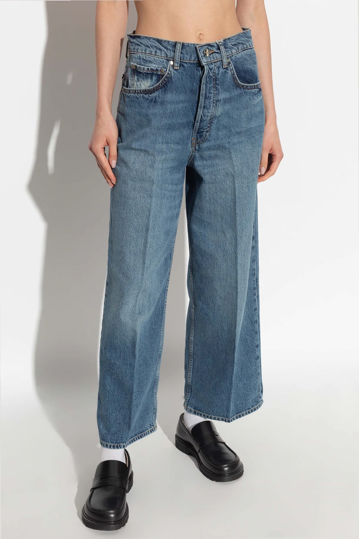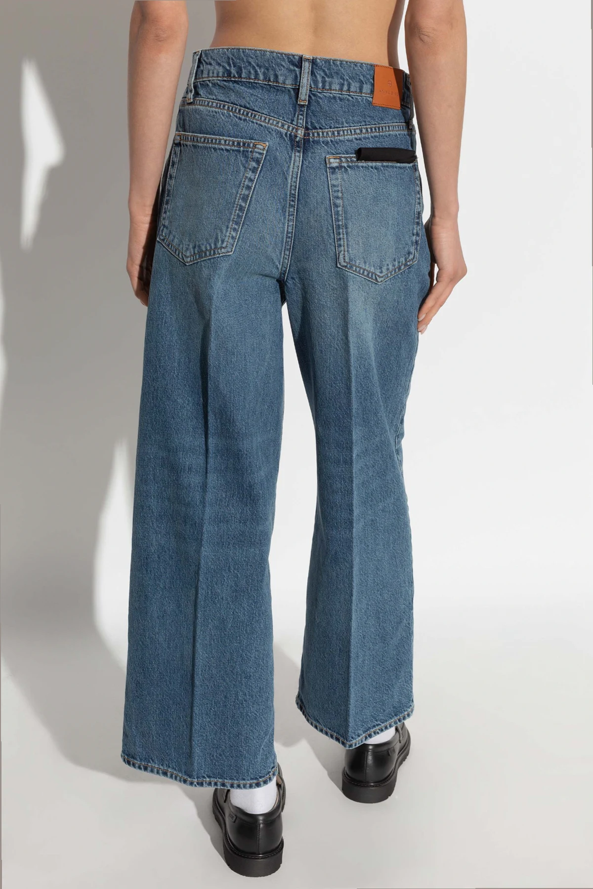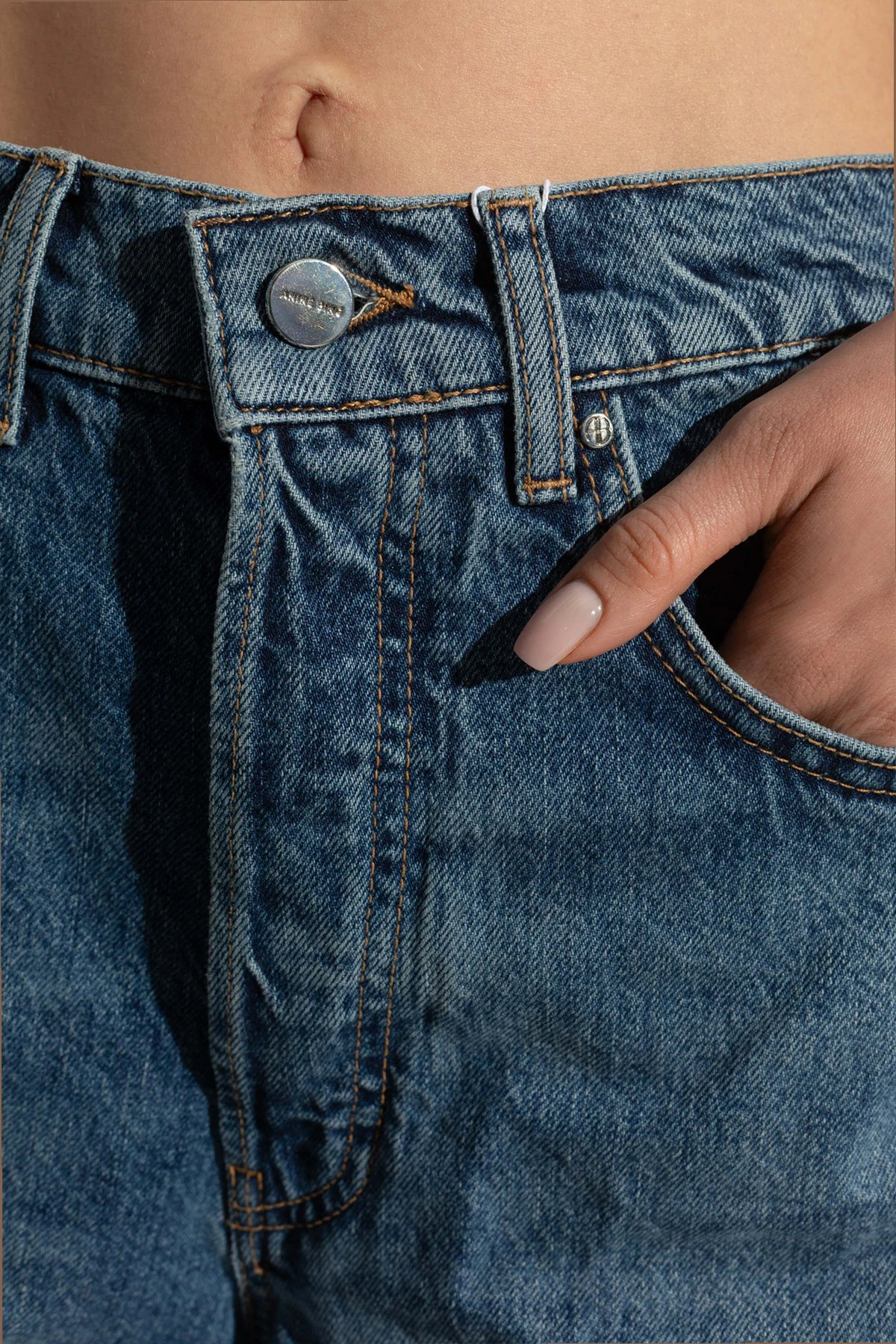 Odkryj wyjątkowy styl i niezrównaną wygodę dzięki jeansom z nogawkami o szerokim kroju od ekskluzywnej marki Anine Bing. Te jeansy, wykonane z klasycznego, nieelastycznego denimu, cechują się luźnymi nogawkami na całej długości, co nadaje im modny fason "boyfriend". Wysoki stan podkreślający talię oraz proste nogawki bez zwężania się ku dołowi tworzą niepowtarzalny, casualowy wygląd.